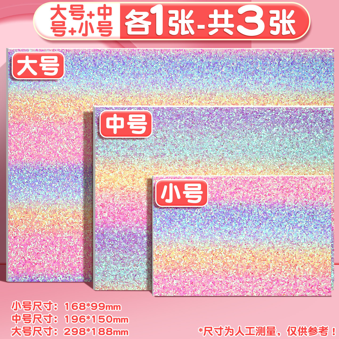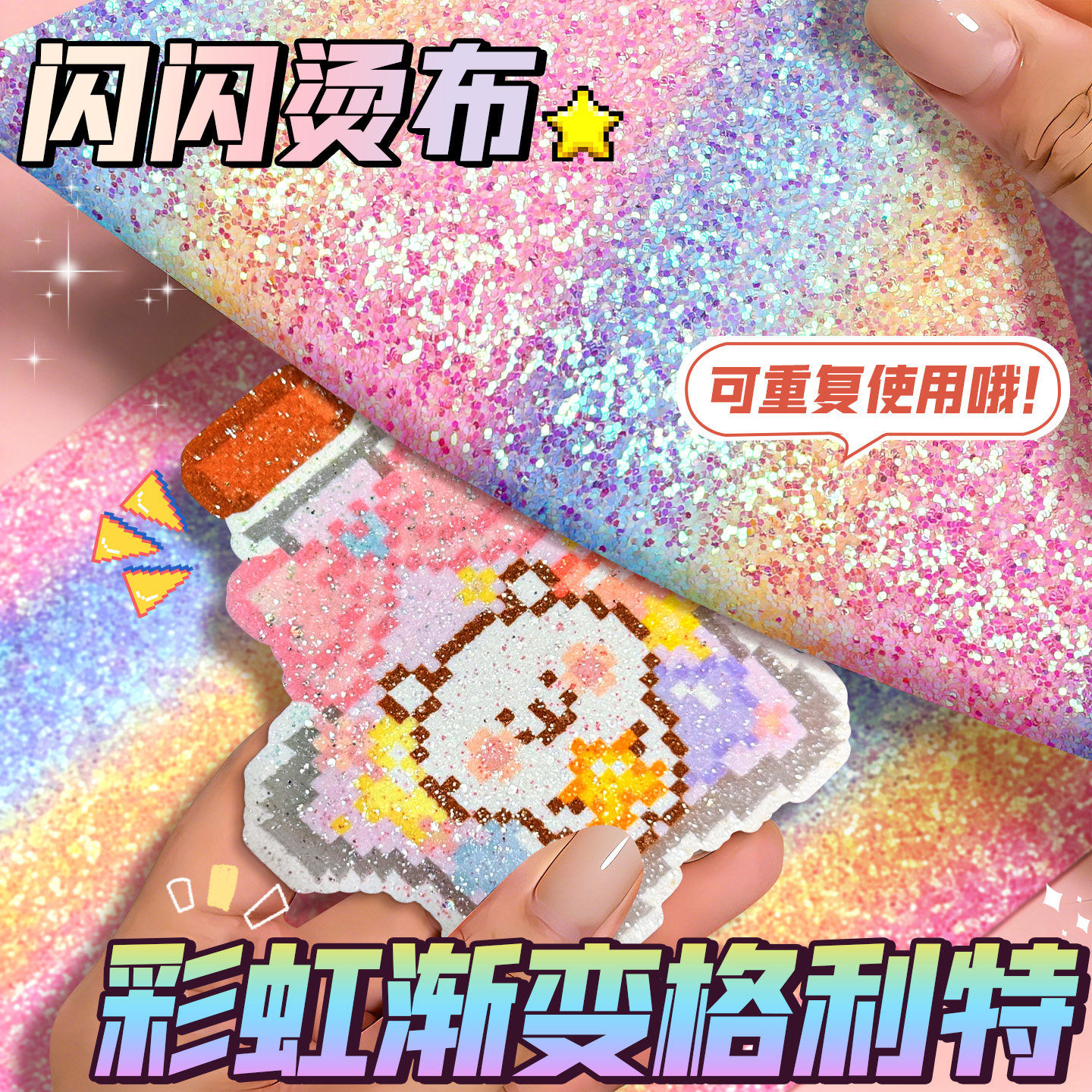 📚 拼豆熨烫布闪粉彩虹渐变格利特布料手工DIY工具闪光格力特亮片布B
