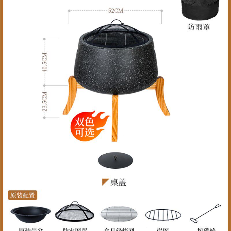 📚 户外庭院烤火炉围炉煮茶炭烤氧化镁电烤炉室内烧烤桌取暖火盆套装