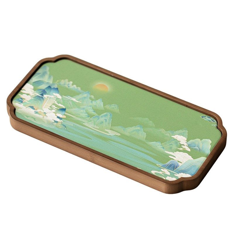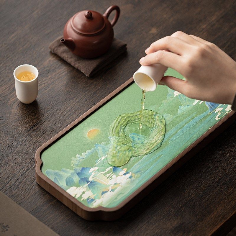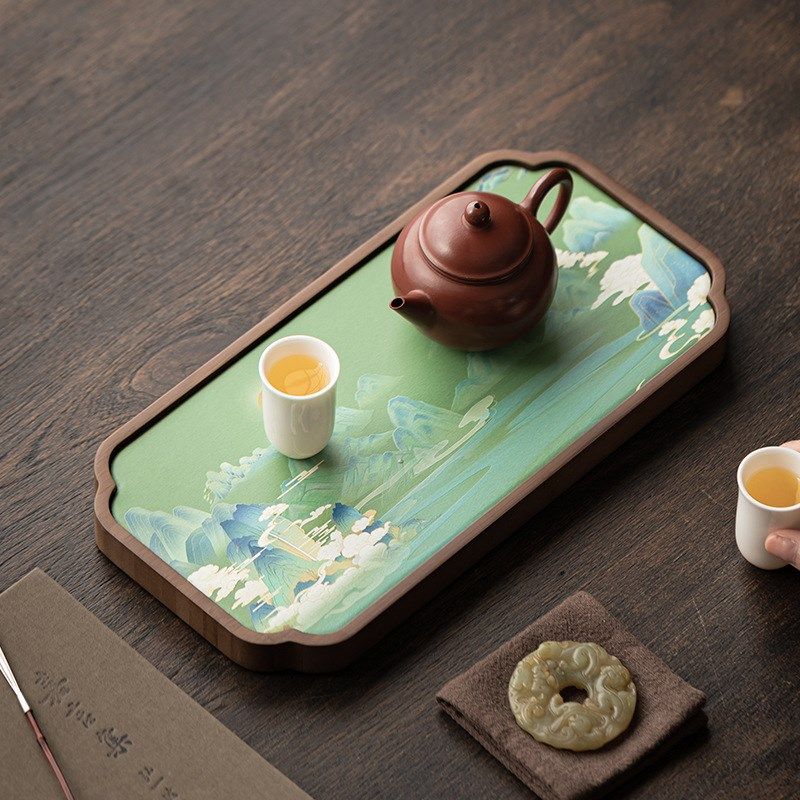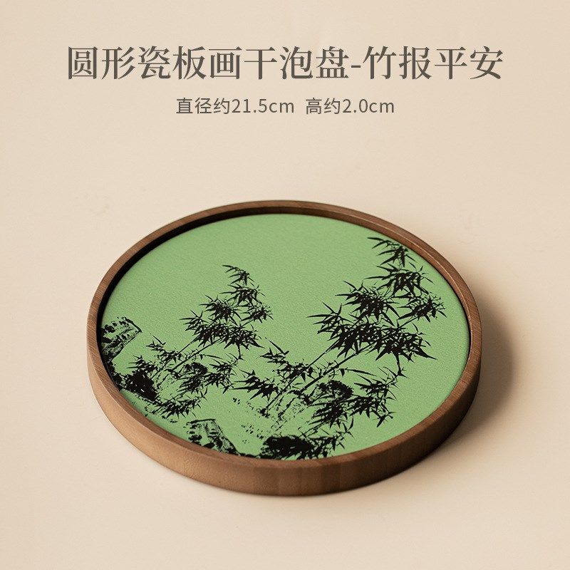 📚 竹报平安新中式瓷板画茶盘干泡盘家用小型茶台壶承托盘茶具配件