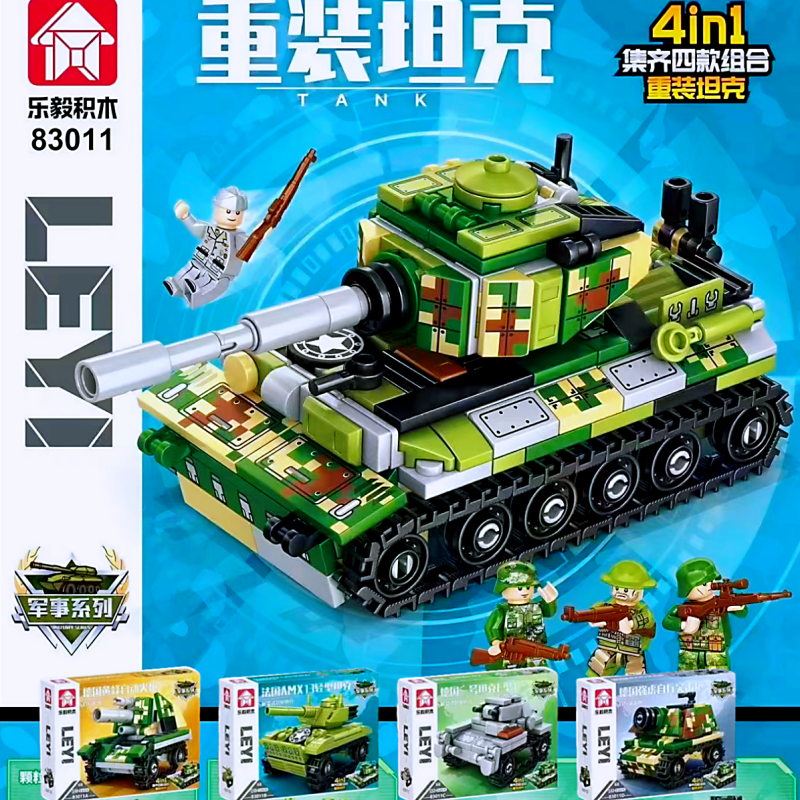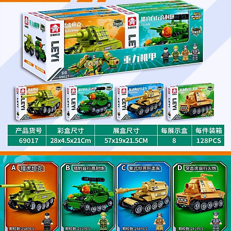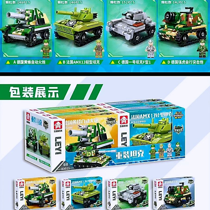 📚 乐毅积木4合1军事重装机甲重型坦克自行火炮歼击车拼装玩具模型男