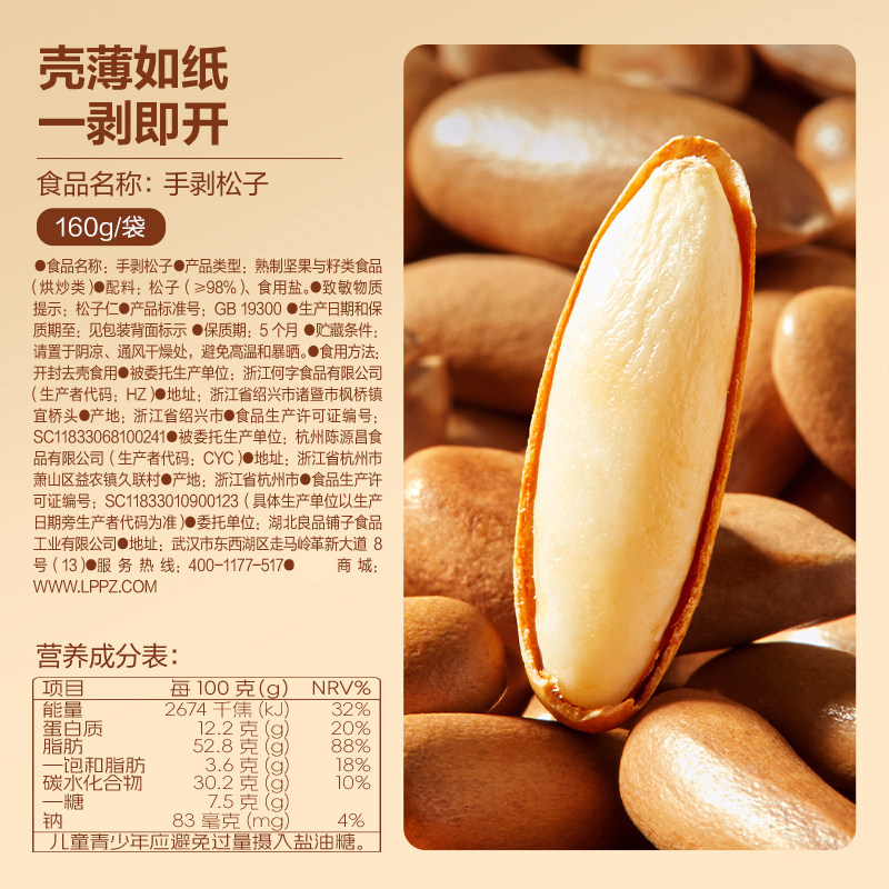 📚 【臻选】良品铺子进口手剥松子大颗粒坚果炒货营养健康休闲零食