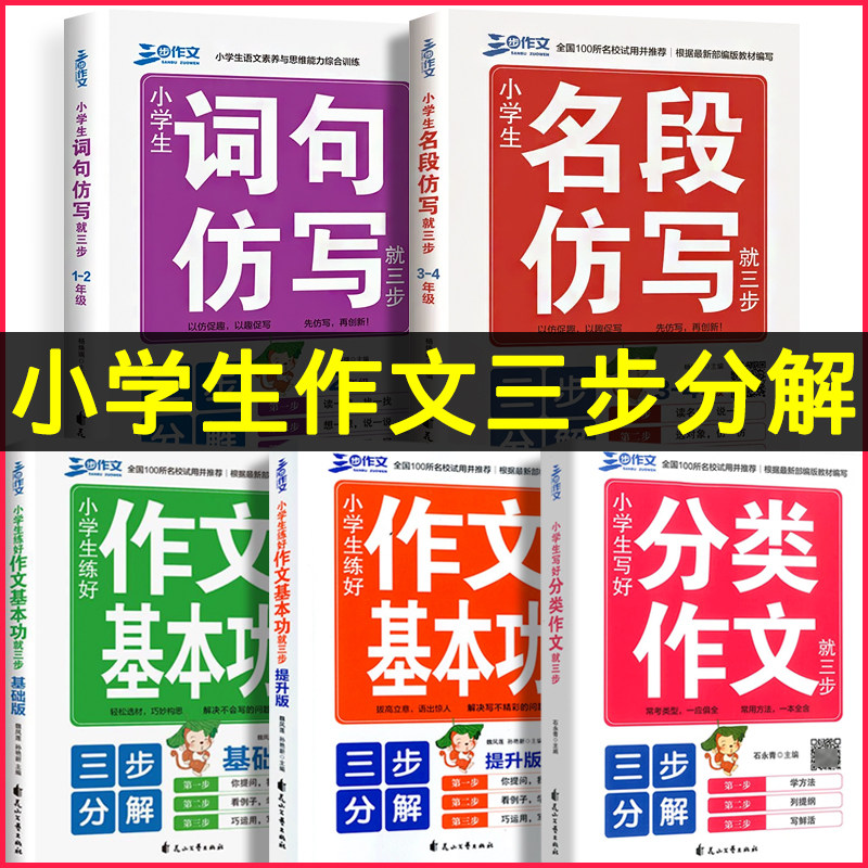 📚 全套5本 三步作文小学生写好分类作文就三步小学生练好作文基本功就三步基础版提升版词句仿写1-2年级名段仿写3-4年级作文书大全