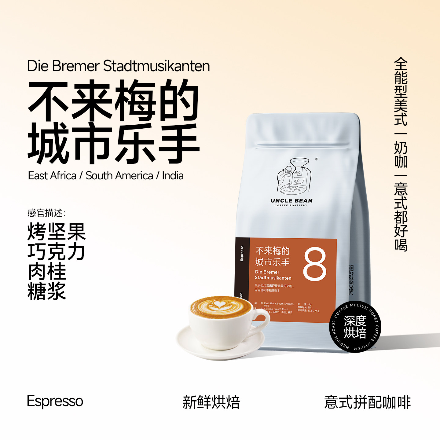 📚 豆叔精品意式咖啡豆浓缩咖啡不来梅的城市乐手可磨粉1KG大包商用