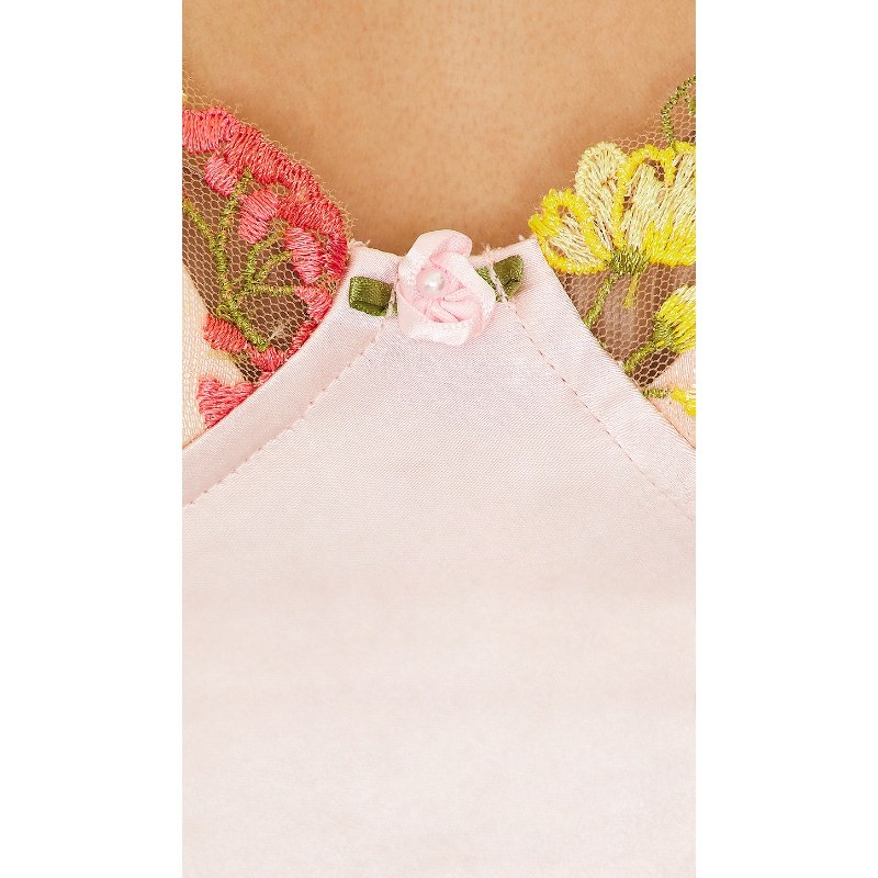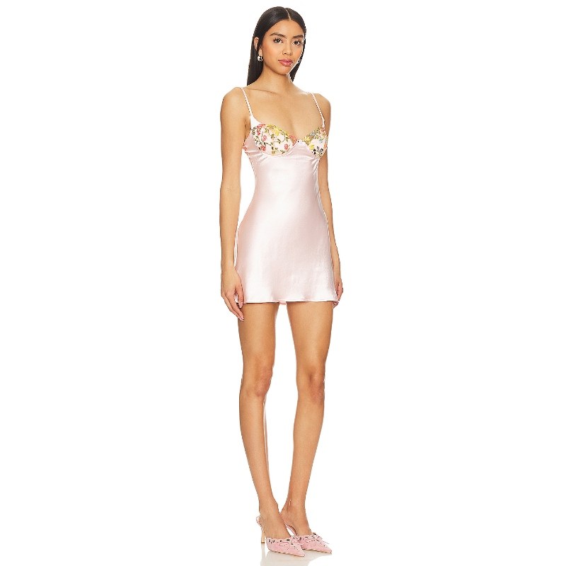 📚 MORE TO COME 欧美辣妹吊带连衣裙绸缎刺绣花朵短裙小众REVOLVE