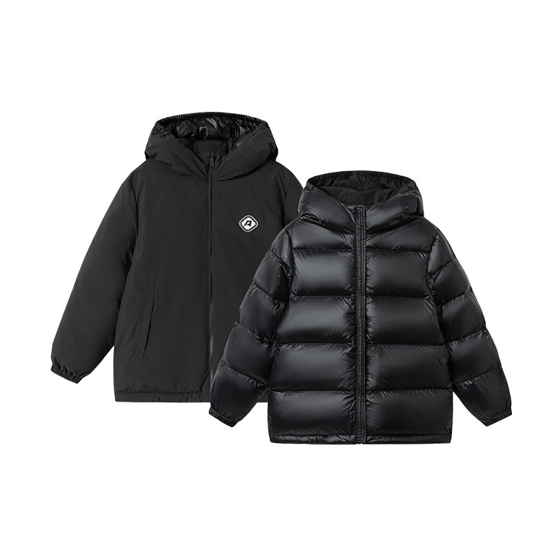 📚 巴拉巴拉儿童羽绒服男童连帽外套大童黑色两面穿2025冬季新款童装