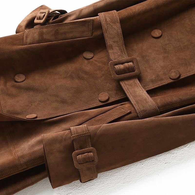 📚 头层真皮皮衣女牛皮磨砂反绒面经典风衣中长款修身秋季真皮外套