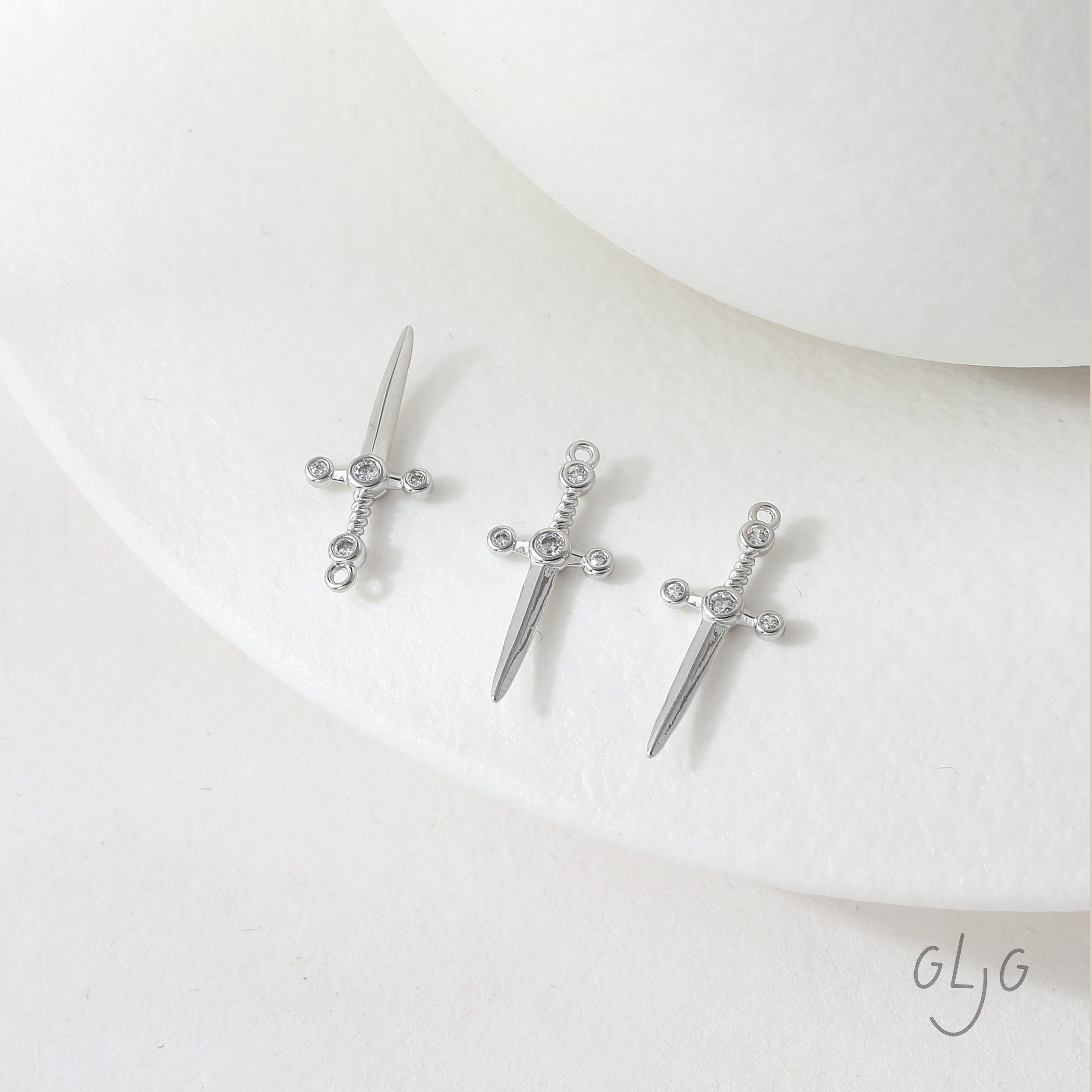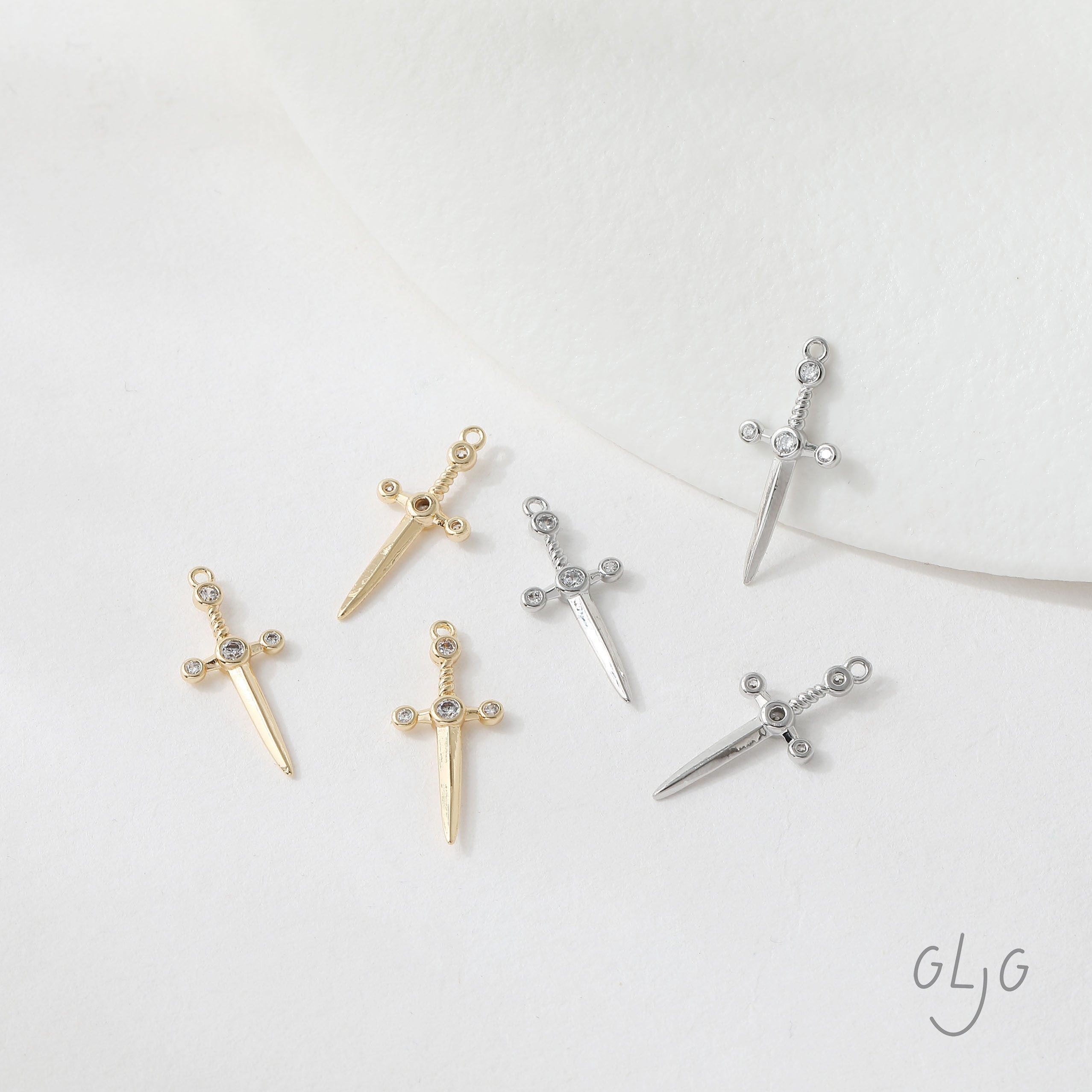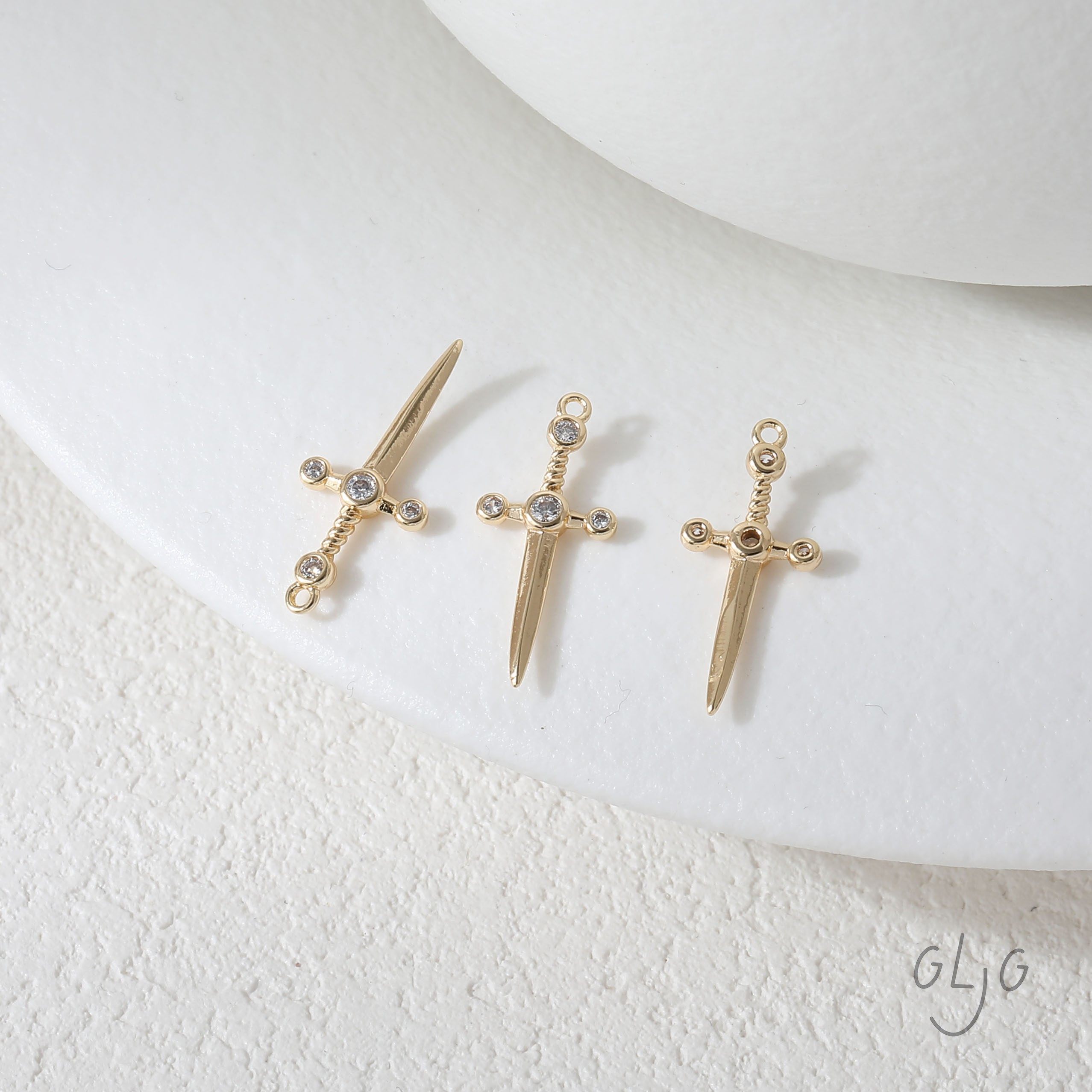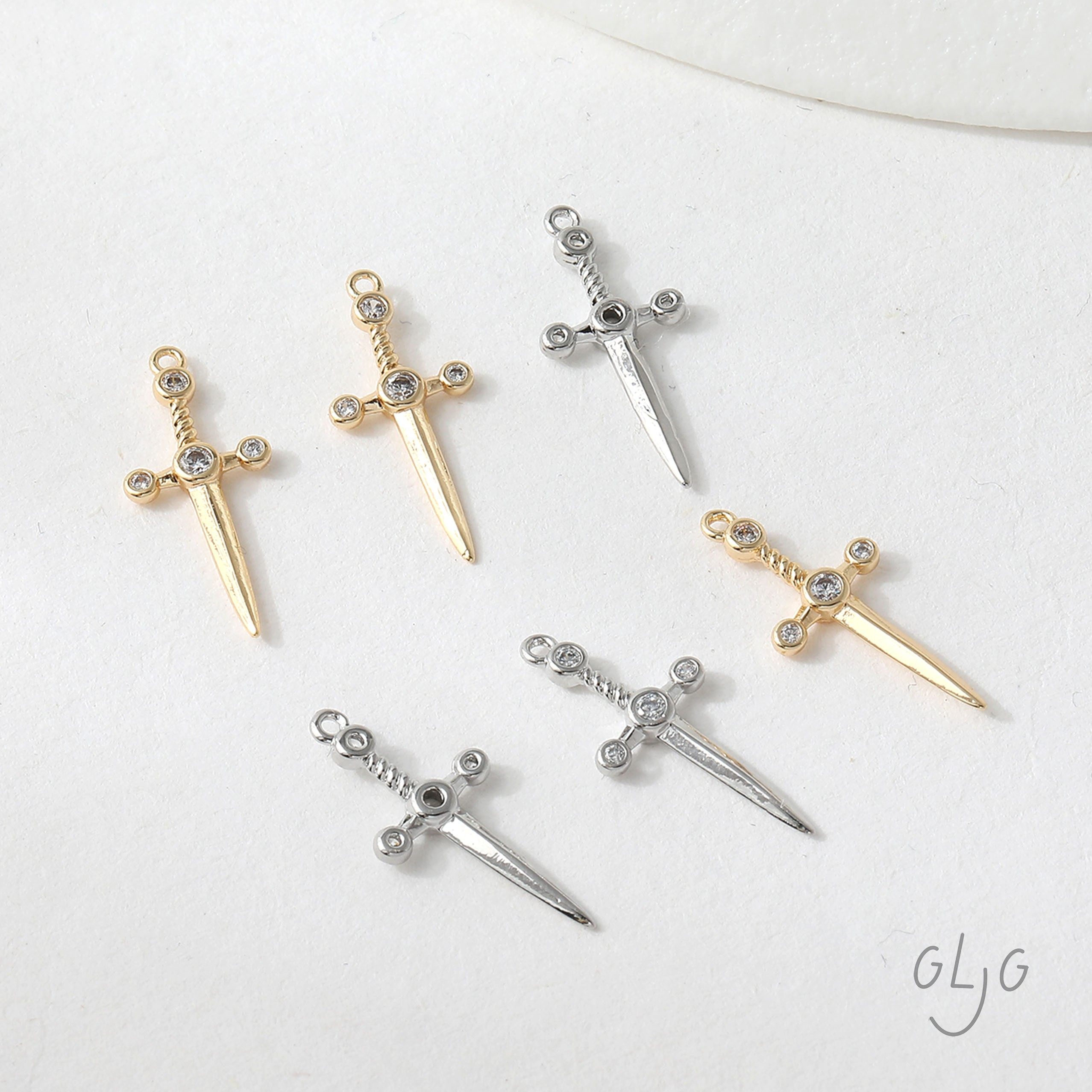 📚 铜镀真金保色光面微镶锆石中古风长剑吊坠diy耳饰项链材料配件