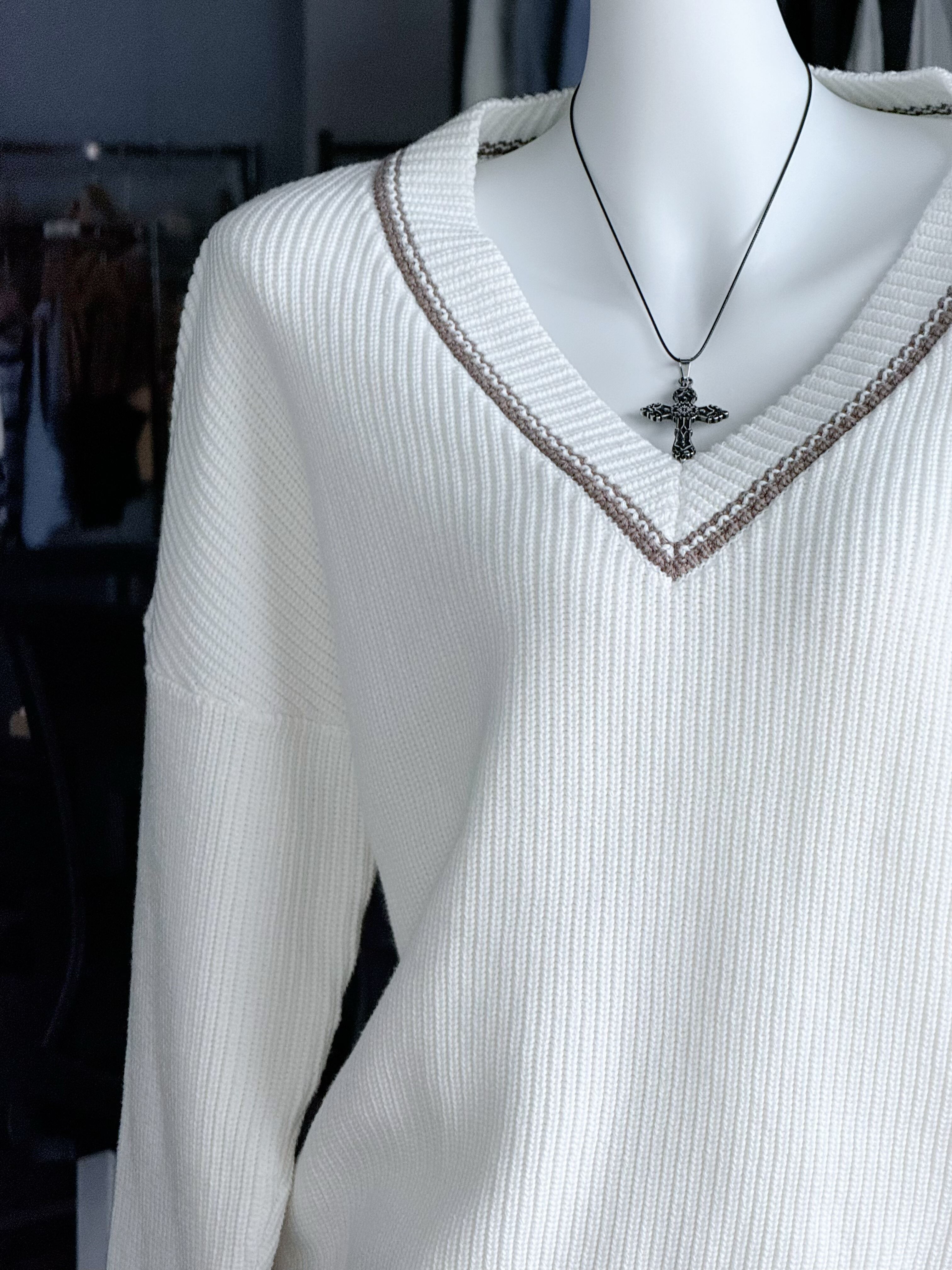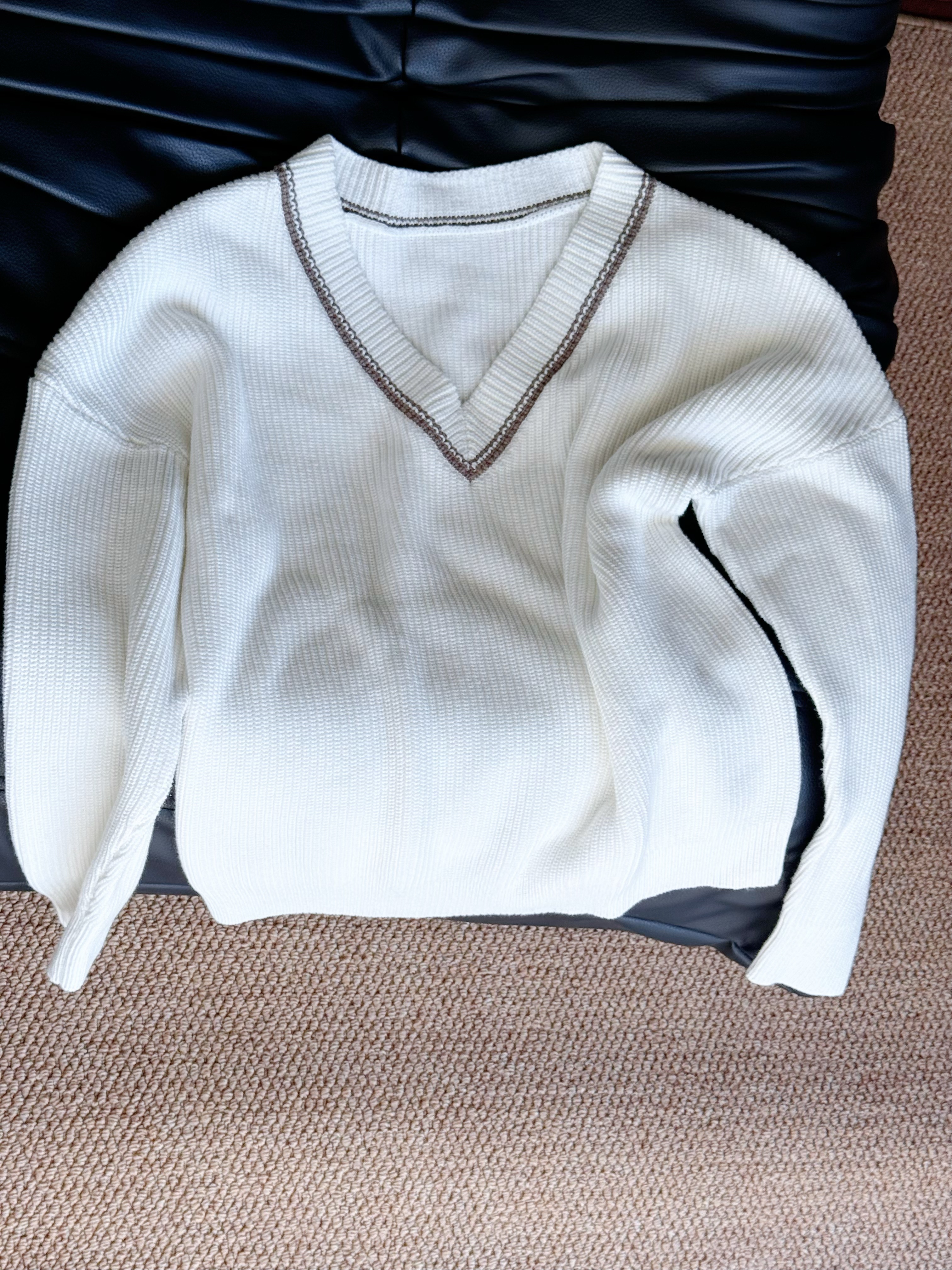 📚 【现货】恋与深空主控猎人小姐V领撞色纯棉显瘦宽松针织慵懒毛衣
