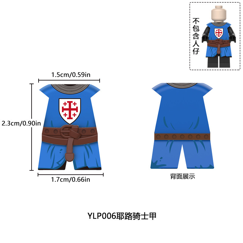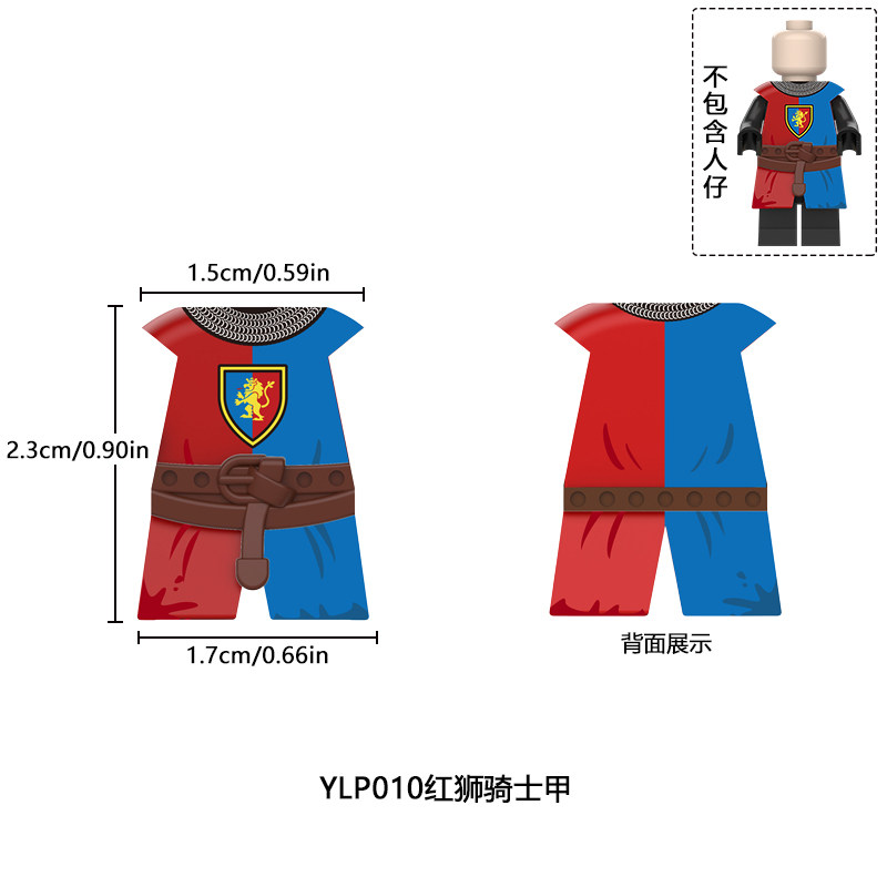 📚 适用国产积木人仔中世纪十字军蓝狮盔甲配件骑士甲第三方拼装玩具