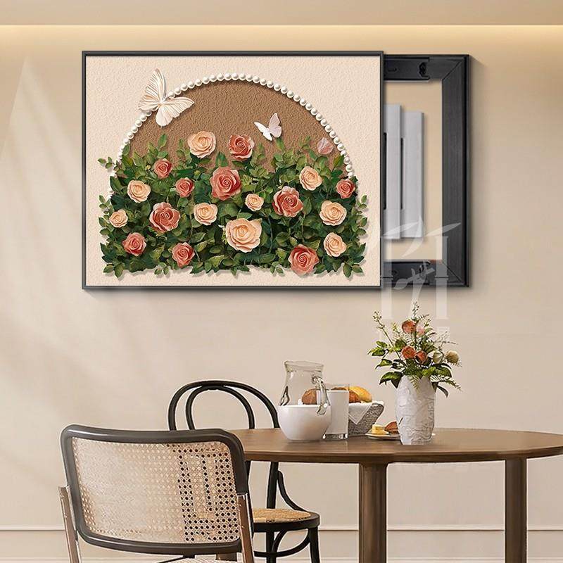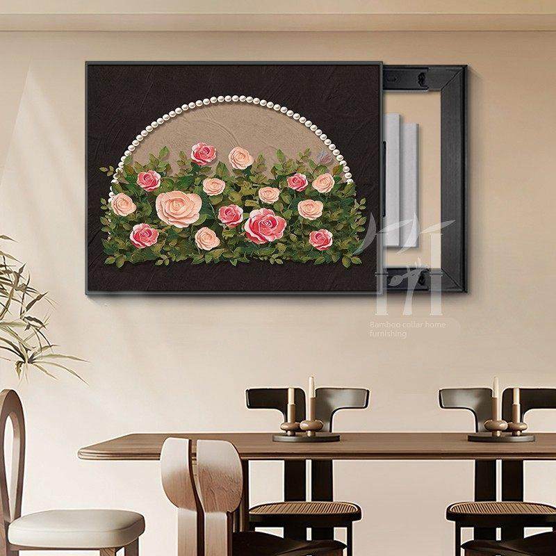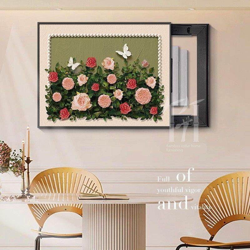 📚 法式覆古玫瑰花电表箱装饰画免打孔配电箱遮挡多媒体餐厅中古挂画