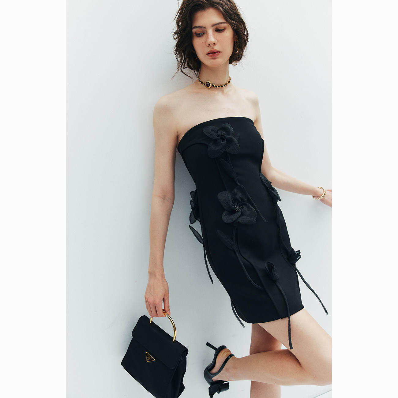 📚 【精心雕琢】轻礼服裙 小众设计立体花朵装饰抹胸收腰连衣裙短裙