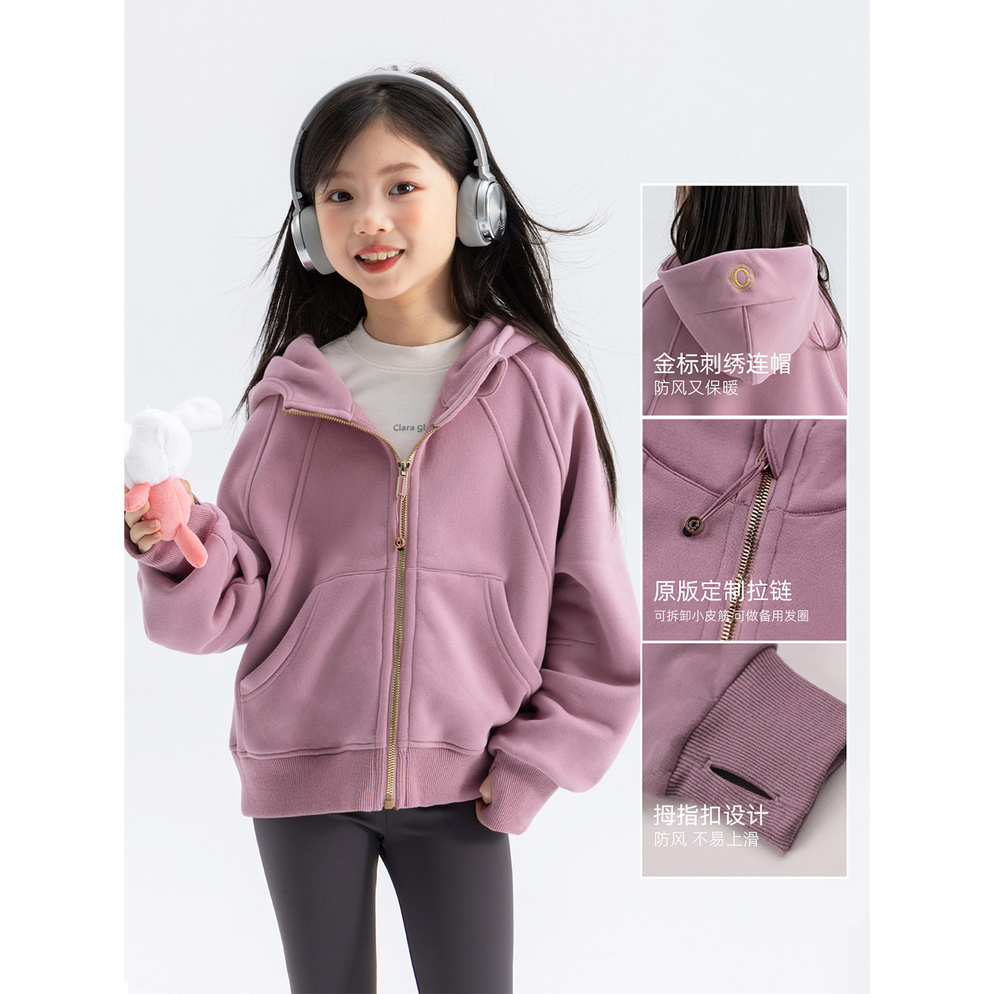 📚 claragirls儿童运动卫衣外套加绒保暖2025年秋冬女童短款宽松上衣