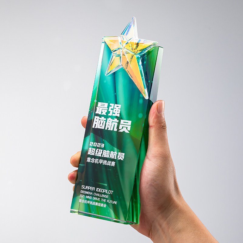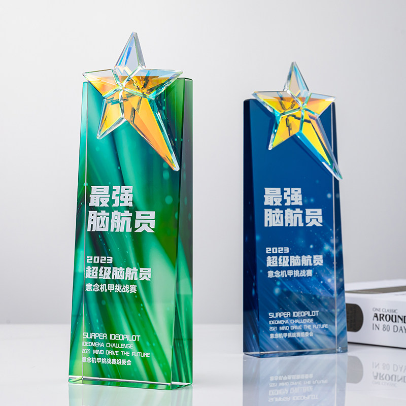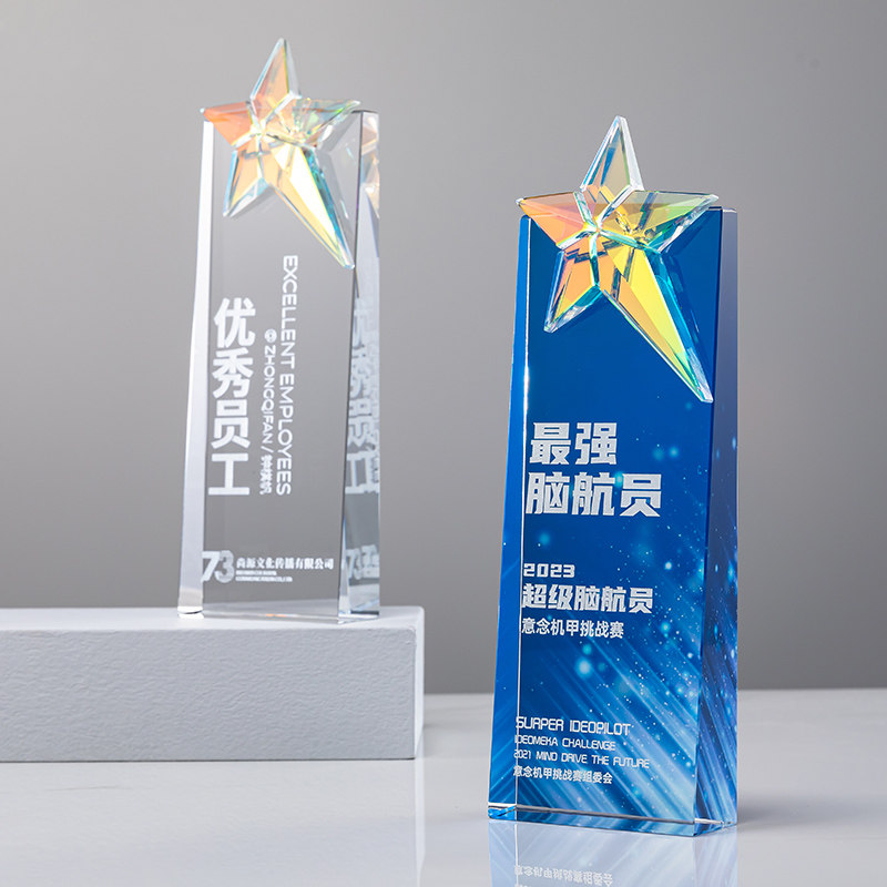 📚 创意炫彩五角星水晶年会奖杯定制定做优先员工年终表彰纪念奖牌订