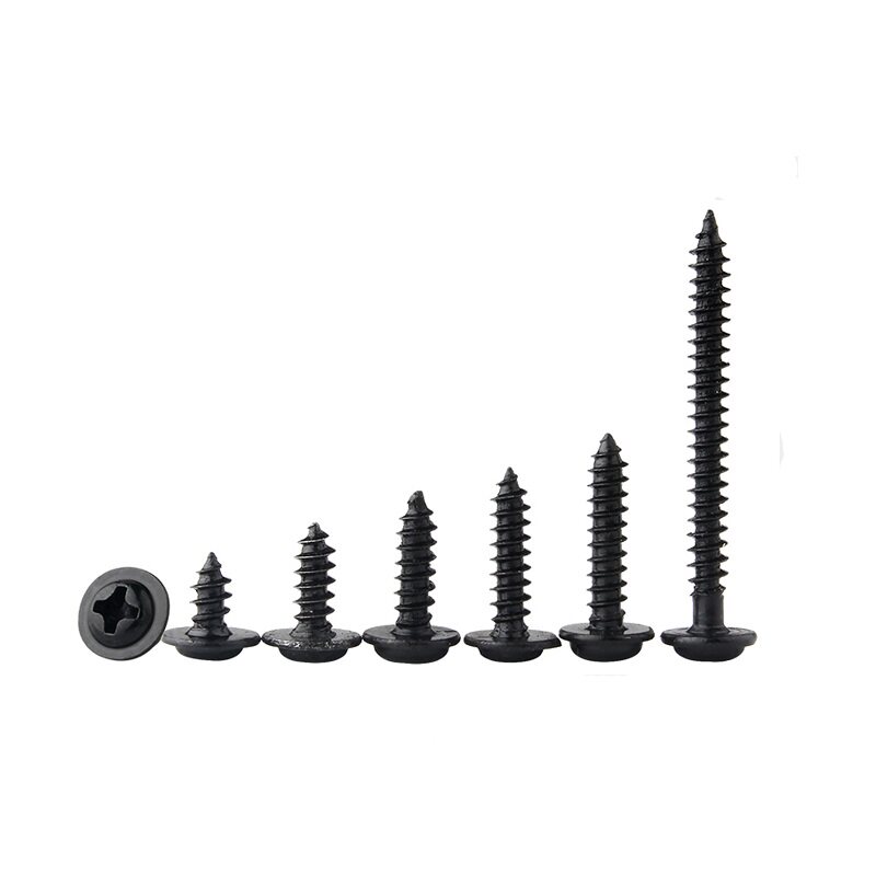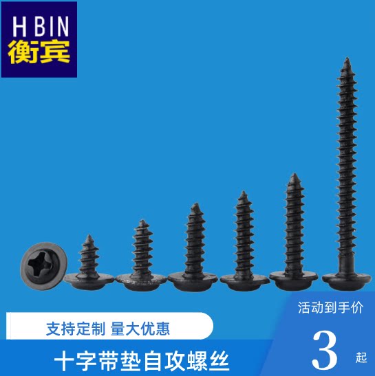 📚 黑十字圆头带垫自攻螺丝PWA盘头尖尾带介螺丝钉M1.4M1.7M2.3M2.6