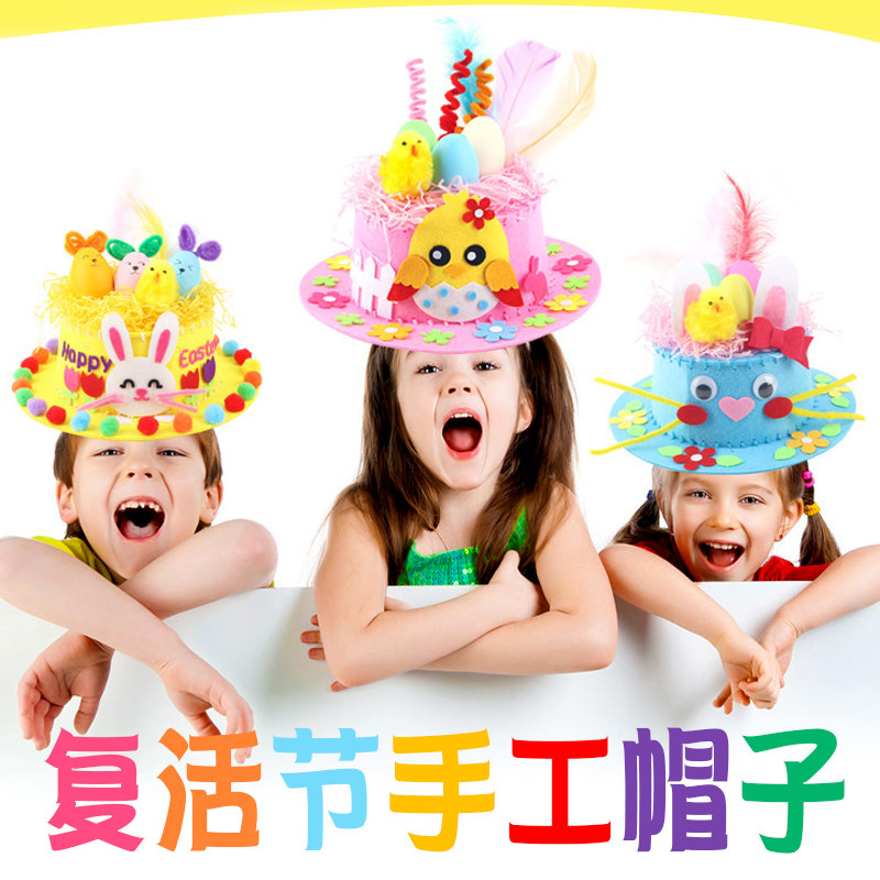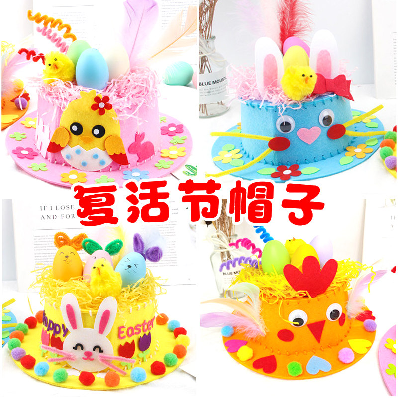 📚 复活节diy帽子儿童幼儿园手工不织布黏贴兔子帽cosplay表演材料包