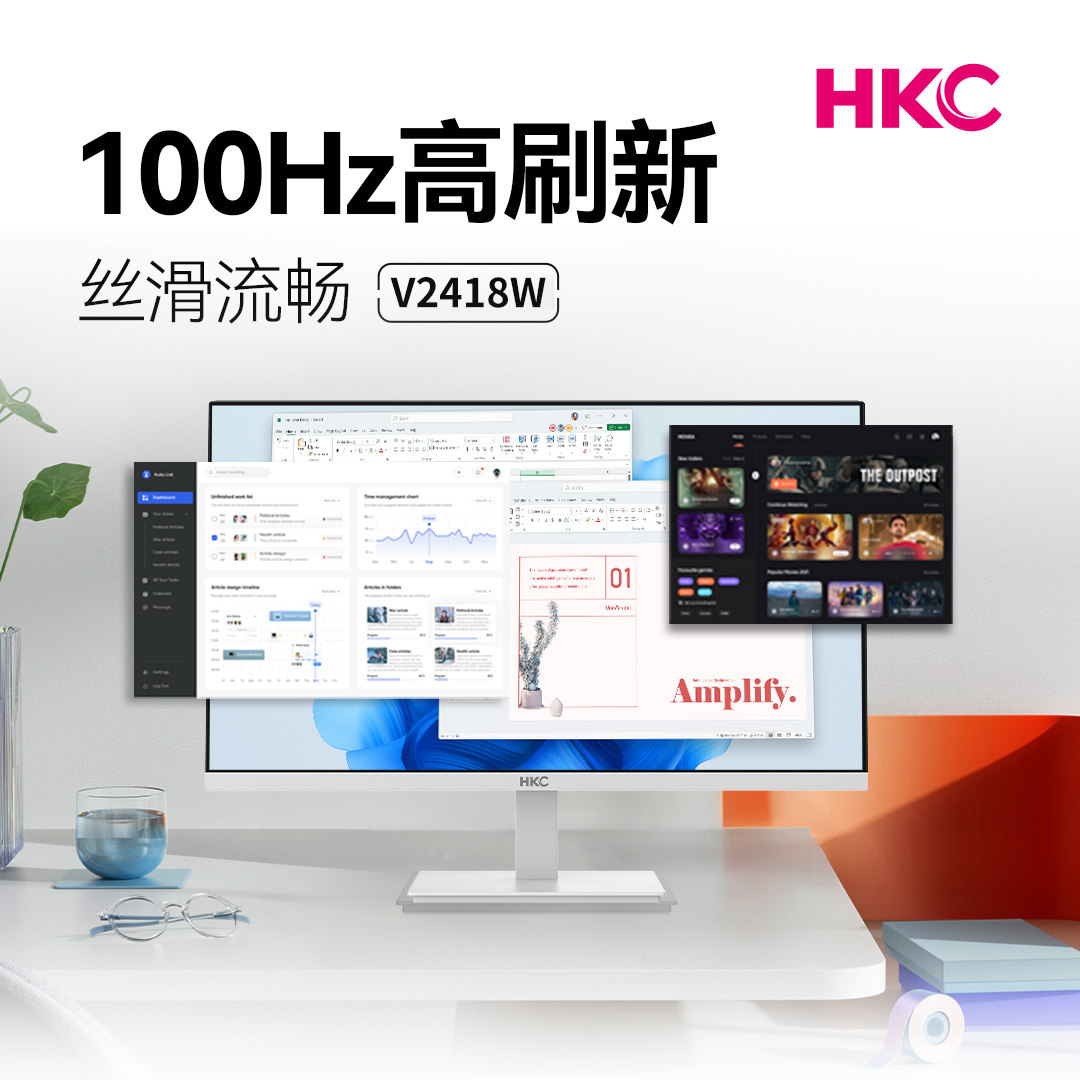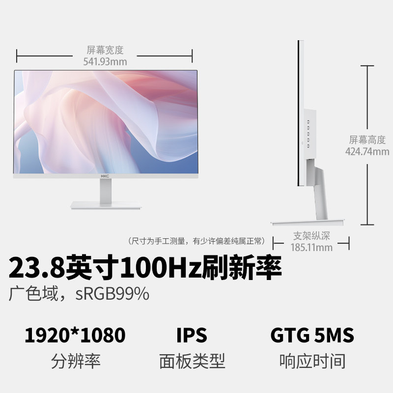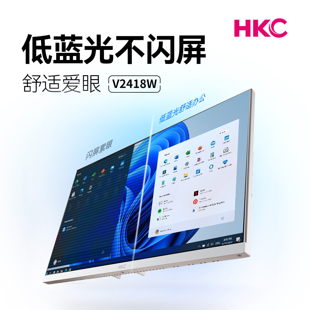 📚 【国补】HKC显示屏24寸办公100Hz护眼电脑屏幕27白色显示器V2418W