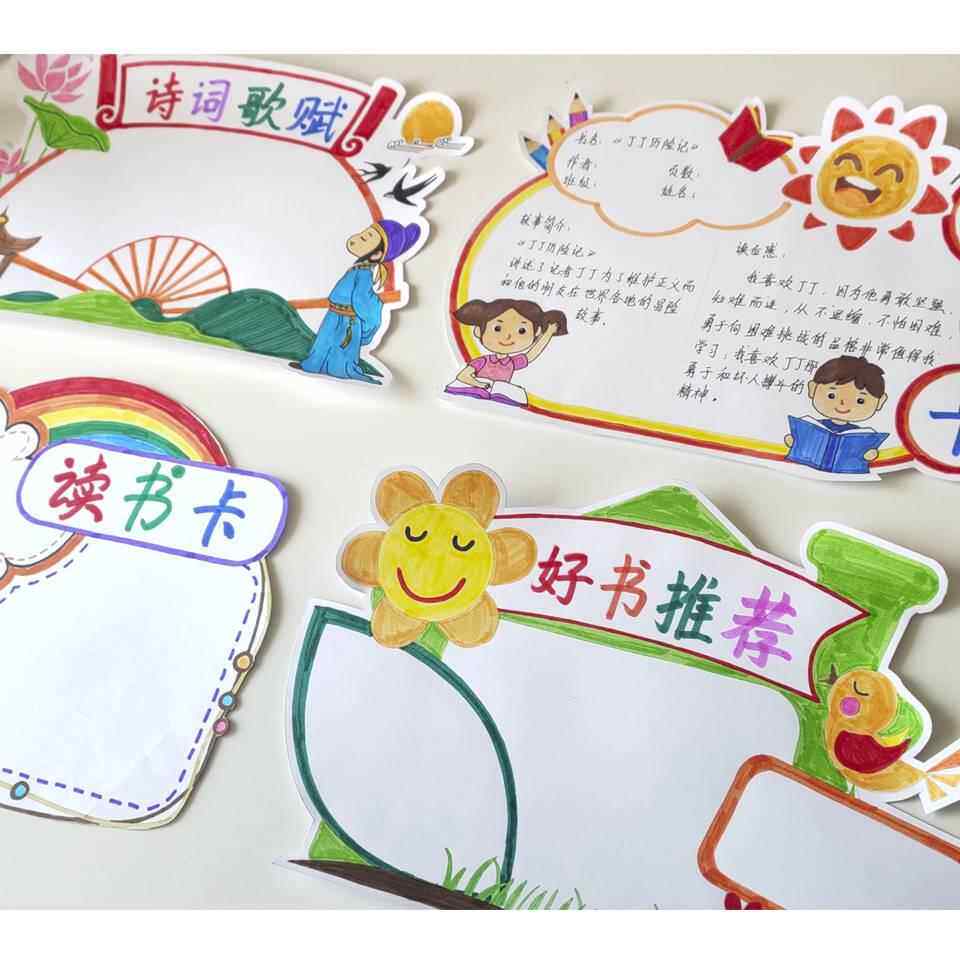 📚 读书卡片小学生用阅读记录分享好书推荐记录卡纸A4半成品涂色模板