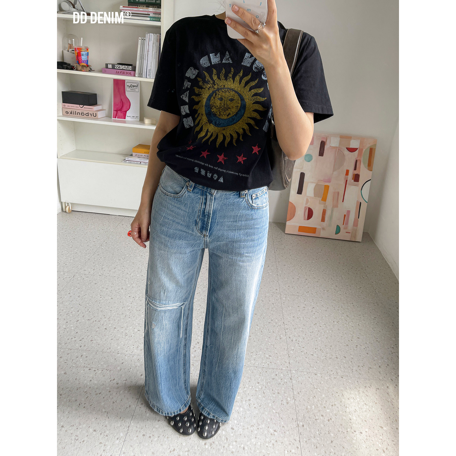 📚 DD「手工冰裂纹」夏季薄款天丝棉时髦复古宽松直筒水洗浅蓝牛仔裤