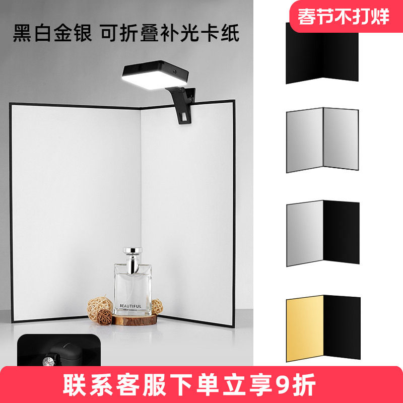 📚 专业摄影补光板桌面美食静物A3拍照道具珠宝饰品拍摄背景板白色黑色吸光折叠卡纸银色反光板便携口袋灯打光板