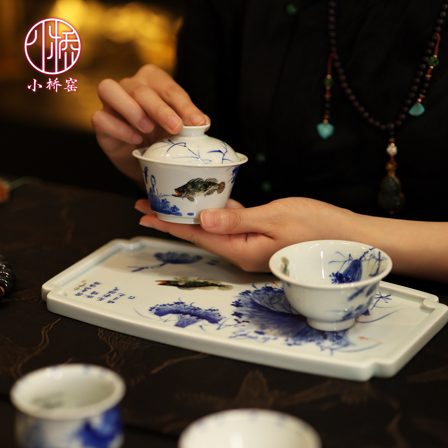 📚 景德镇小桥窑青花盖碗主人杯张彩云朱清联名和为贵茶杯功夫茶具
