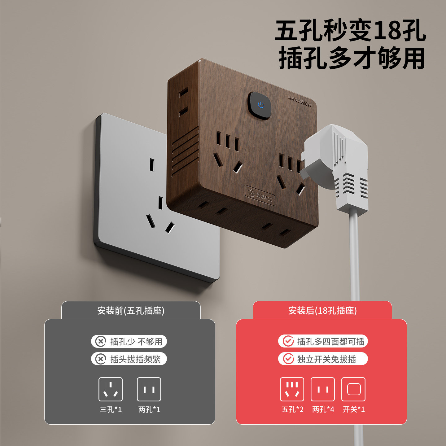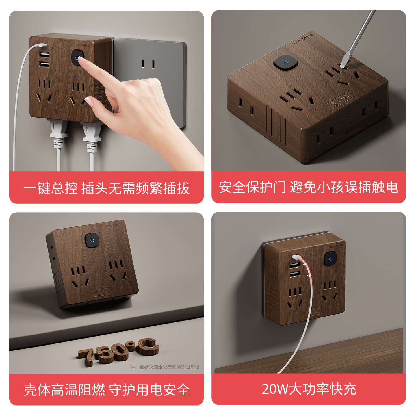 📚 国际电工木纹多功能转换器20W快充插排一转多扩展插座拓展插线板