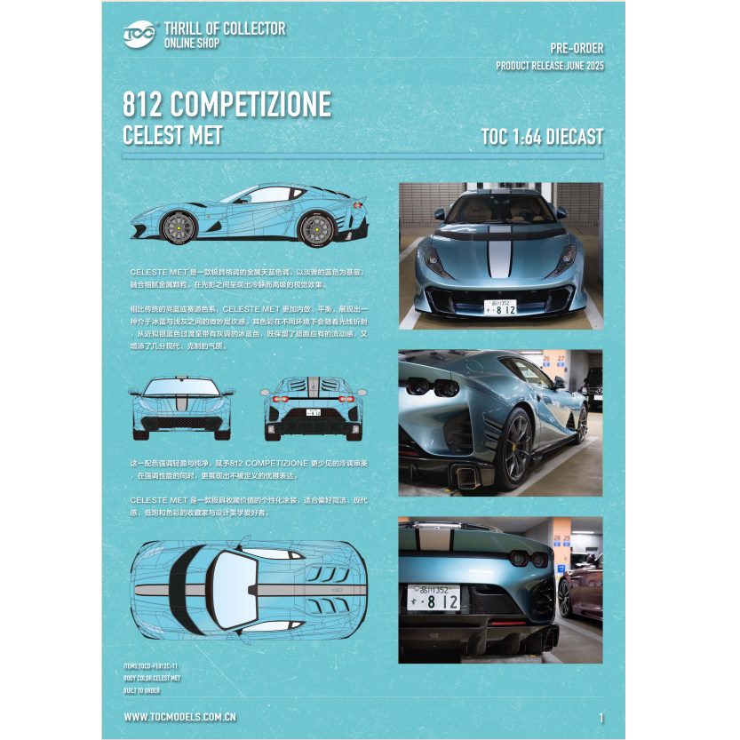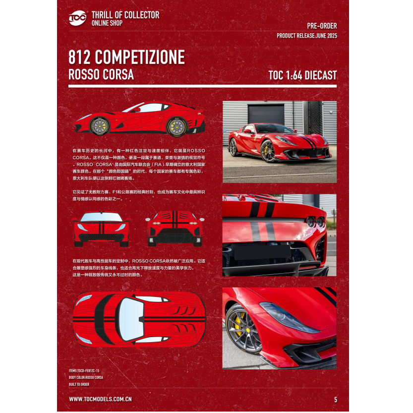 📚 TOC 1:64 法拉利 FE812C 合金仿真汽车模型
