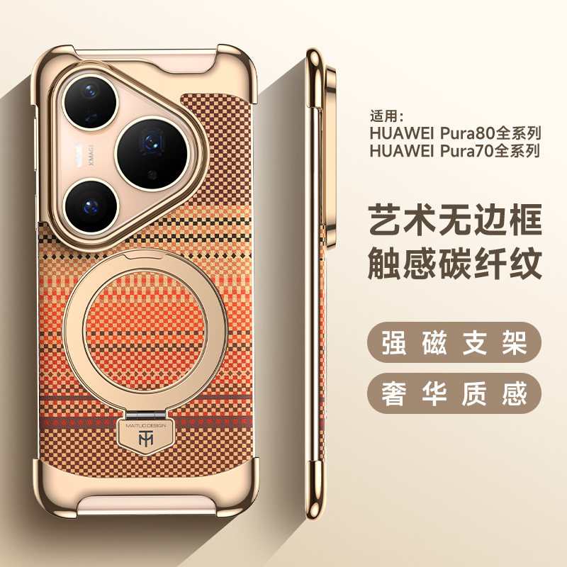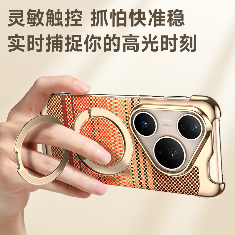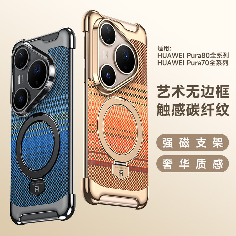 📚 适用于华为pura80手机壳凯夫拉纹pura70proultra隐形支架超薄金属无边LMR-AL00吸磁无线充ady-al10磨砂保护套