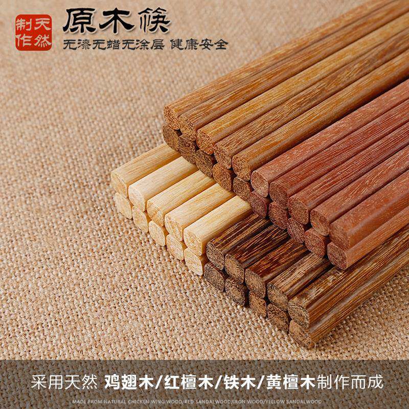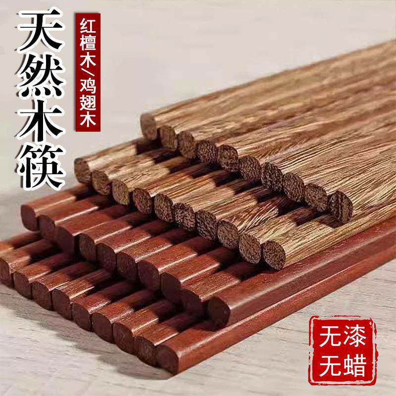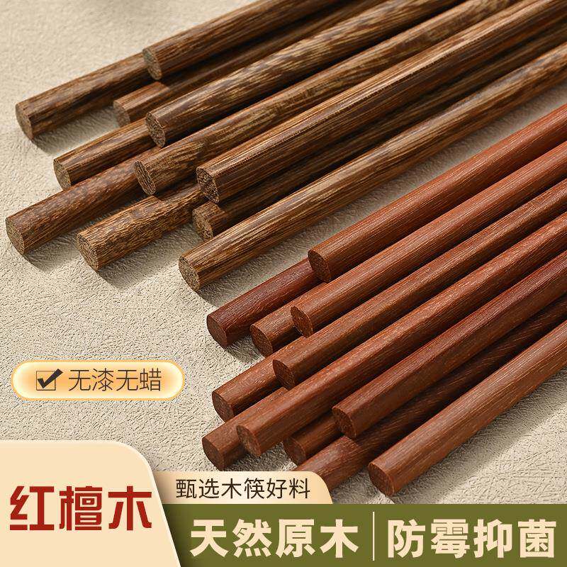 📚 正宗红檀木筷子家用无漆无蜡木公筷酒店防滑耐高温实木快子家庭装