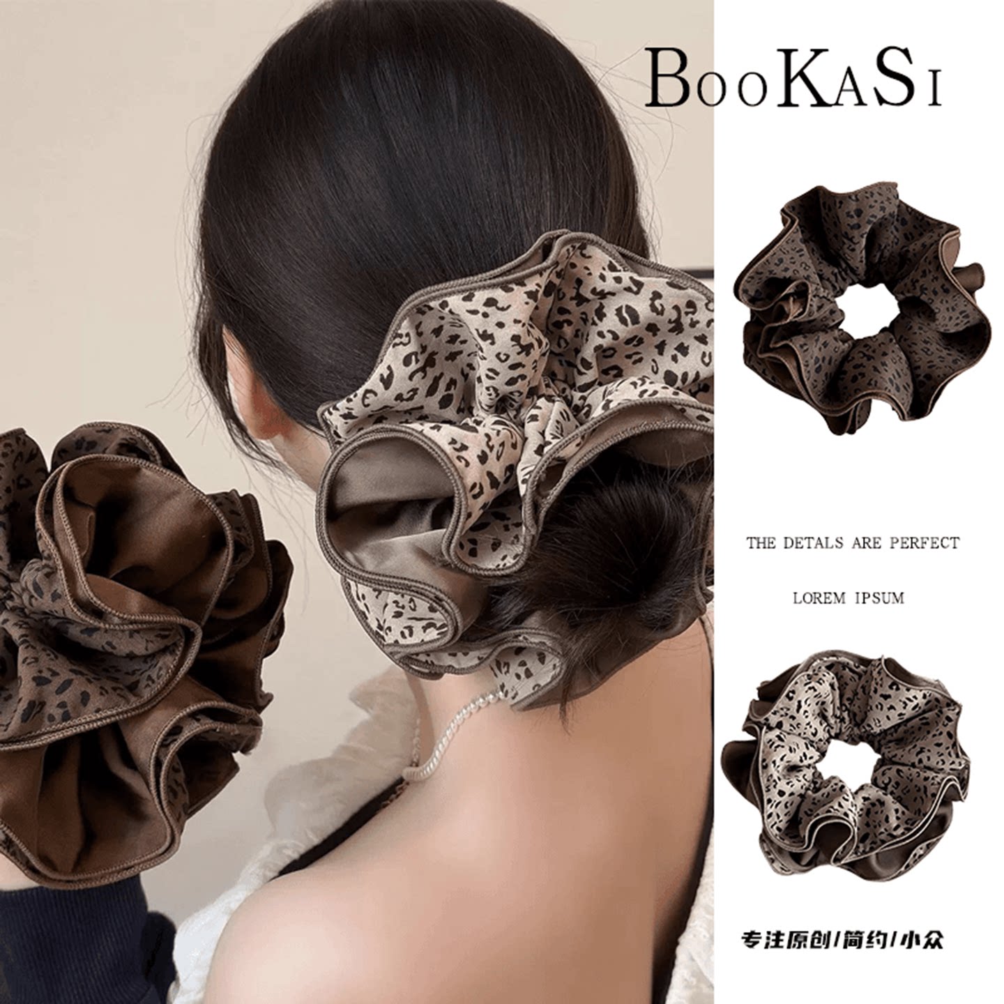 📚 双层豹纹大肠发圈女2025新款扎丸子头马尾发绳超大号气质绑发皮筋