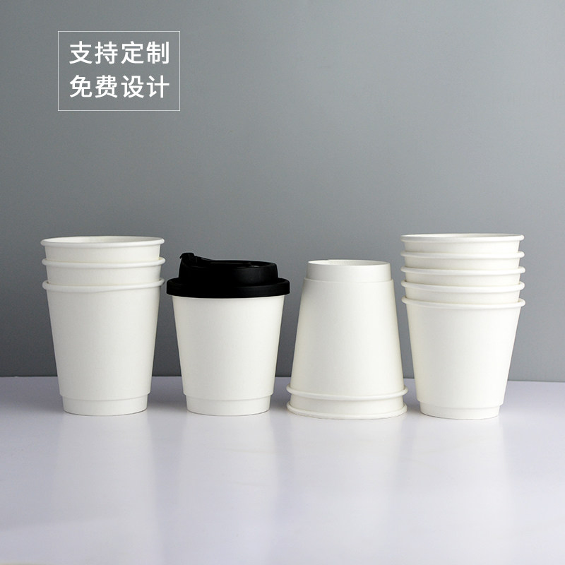 📚 双层中空纸杯加厚防漏外卖带定制咖啡奶茶热饮杯10oz10盎司500只