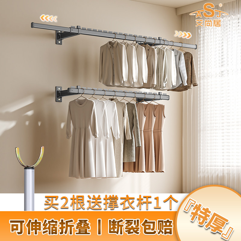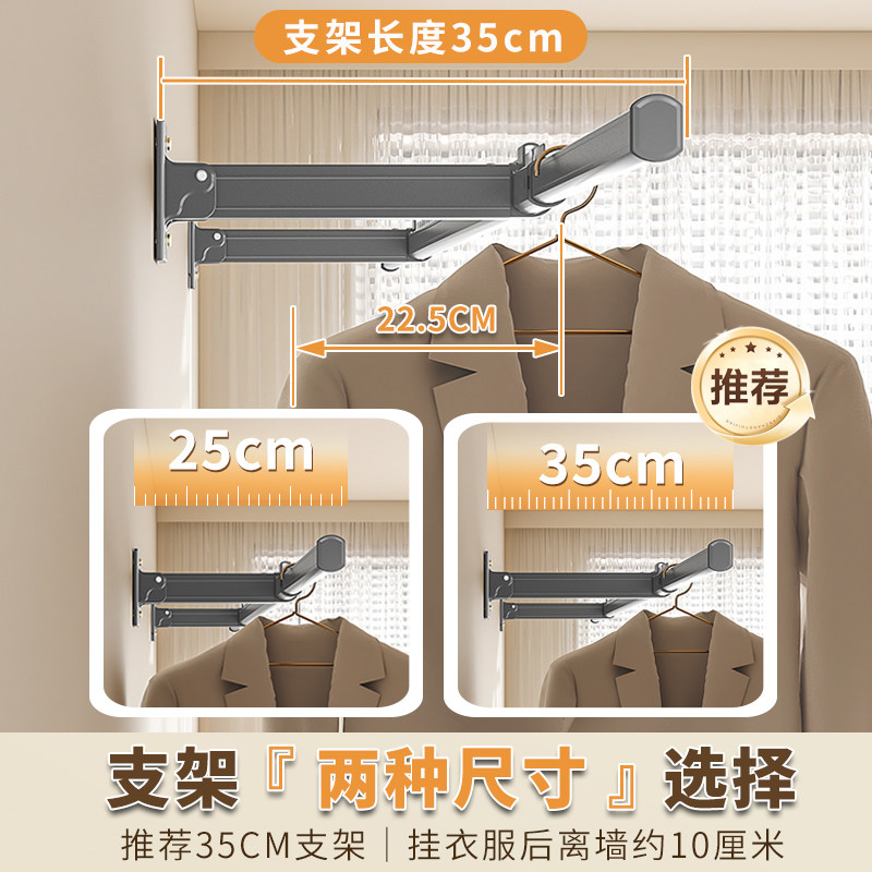 📚 阳台侧装墙上固定壁挂式折叠晾衣架可伸缩晾晒杆铝合金侧面凉挂衣