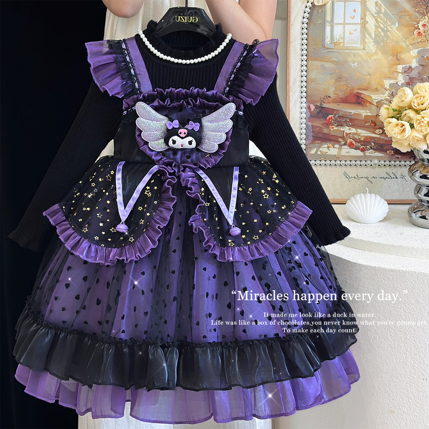 👗裙子的设计简直太梦幻了!库洛米元素的裙子女童毛衣连衣裙,简直就像是从童话世界走出来的公主裙。裙子的颜色是冬日的暖色调,给人一种温馨而又不失优雅的感觉。穿上它,仿佛整个世界都变得温柔起来。
