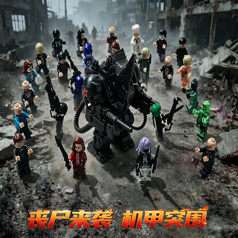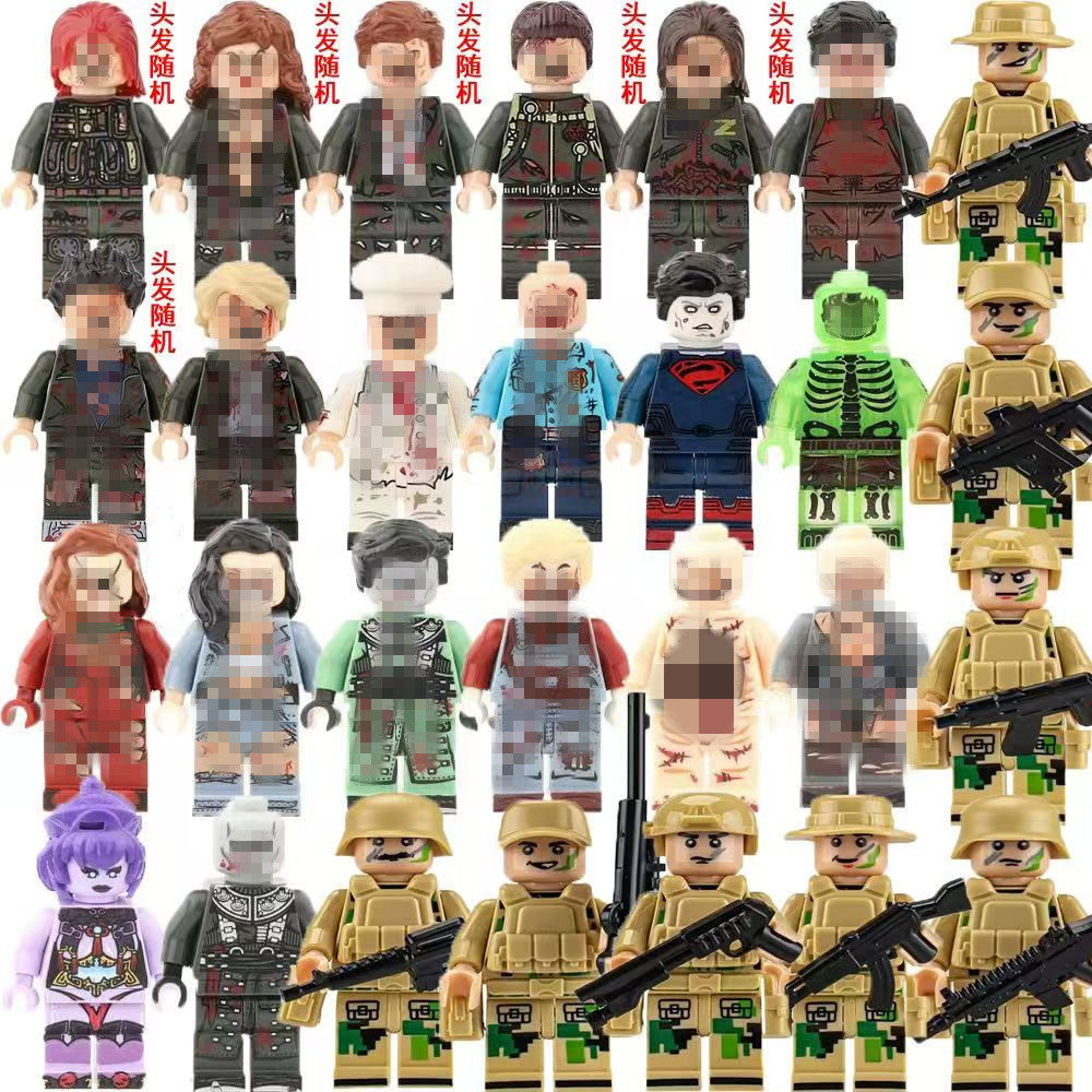 📚 乐容高生化危机丧尸人仔积木小人偶丧失牢笼基地僵尸男孩拼装玩具