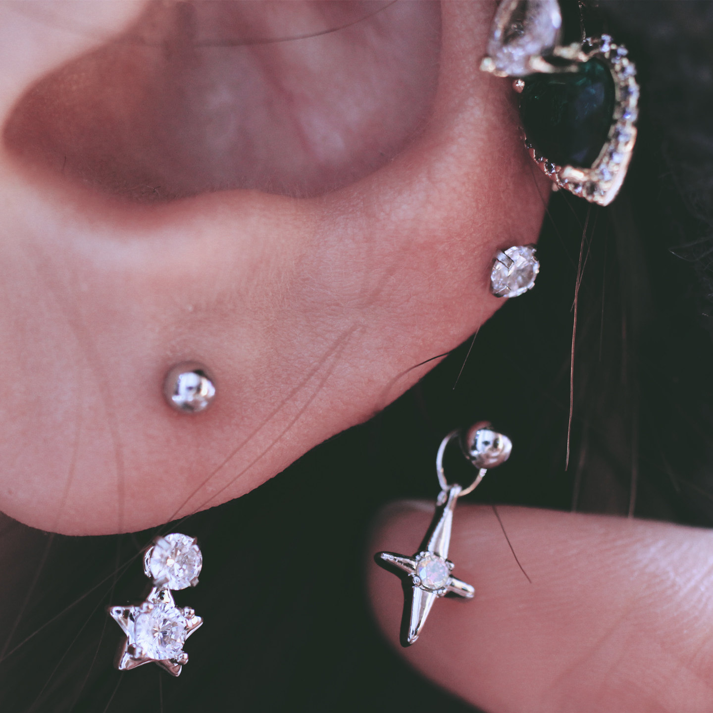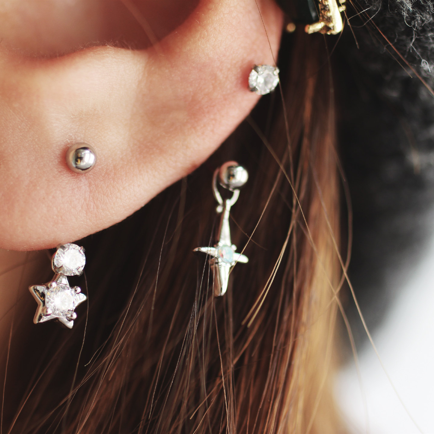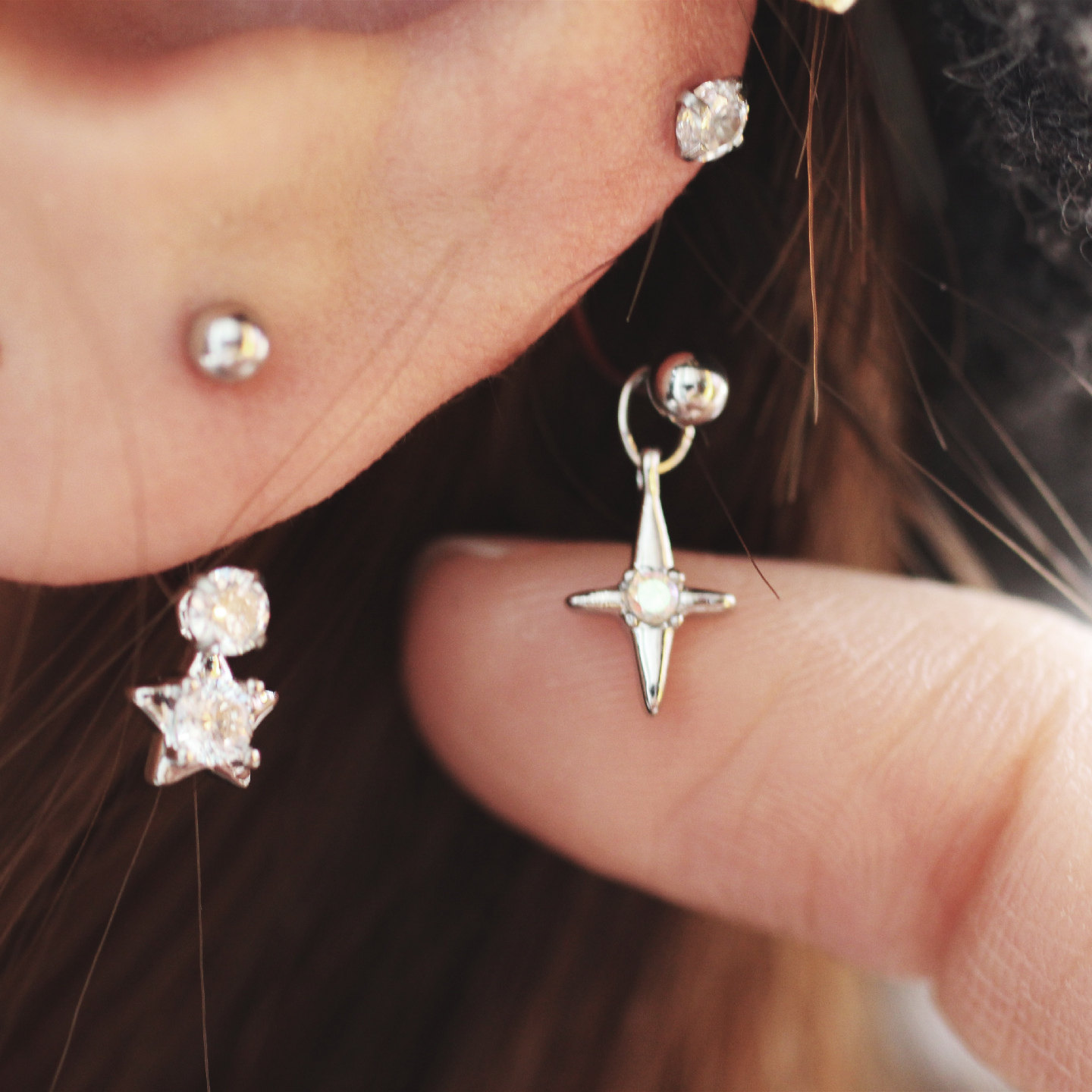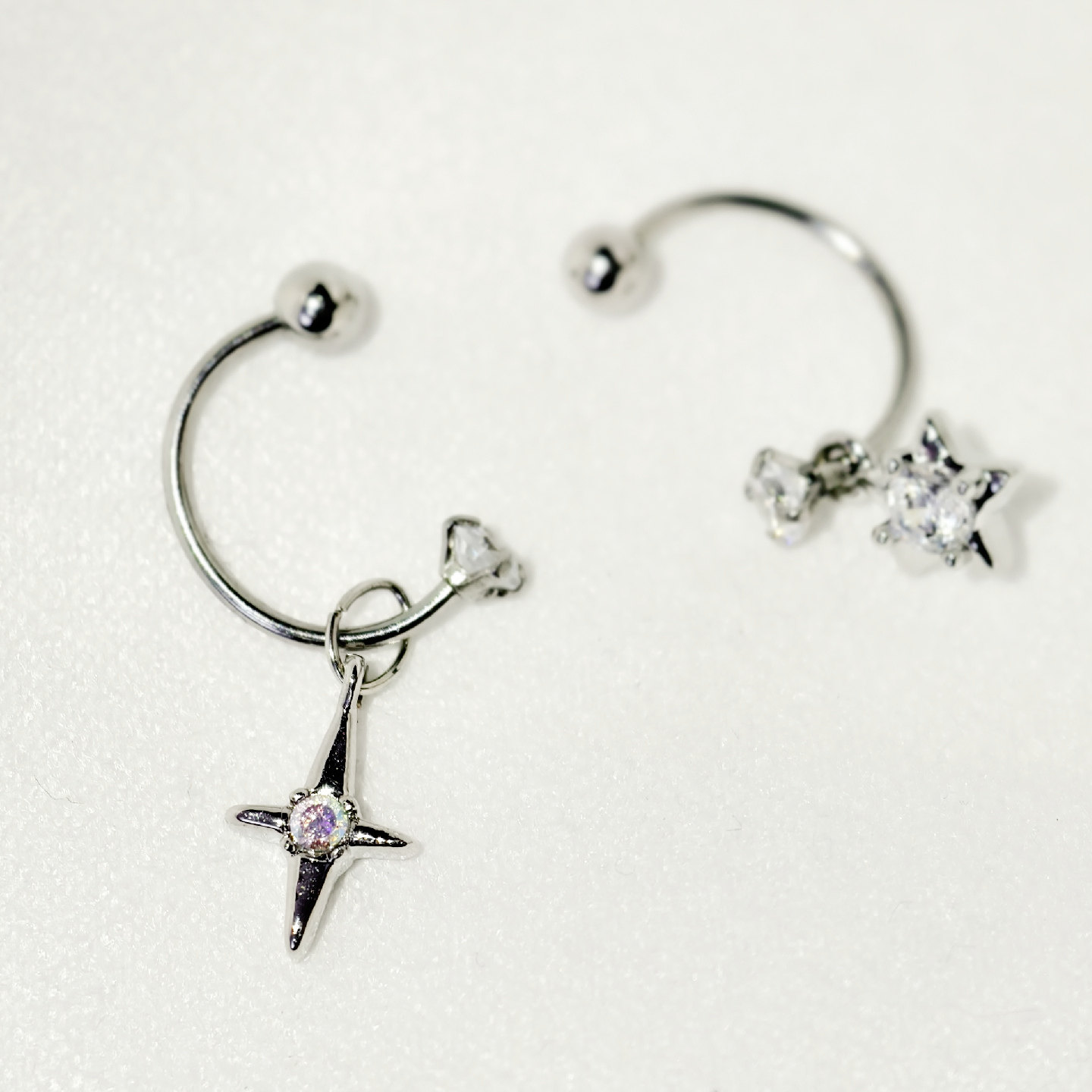 📚 U型星星马蹄环星芒钻水滴双头十字星芒粗杆螺丝扣耳钉耳蜗合金女