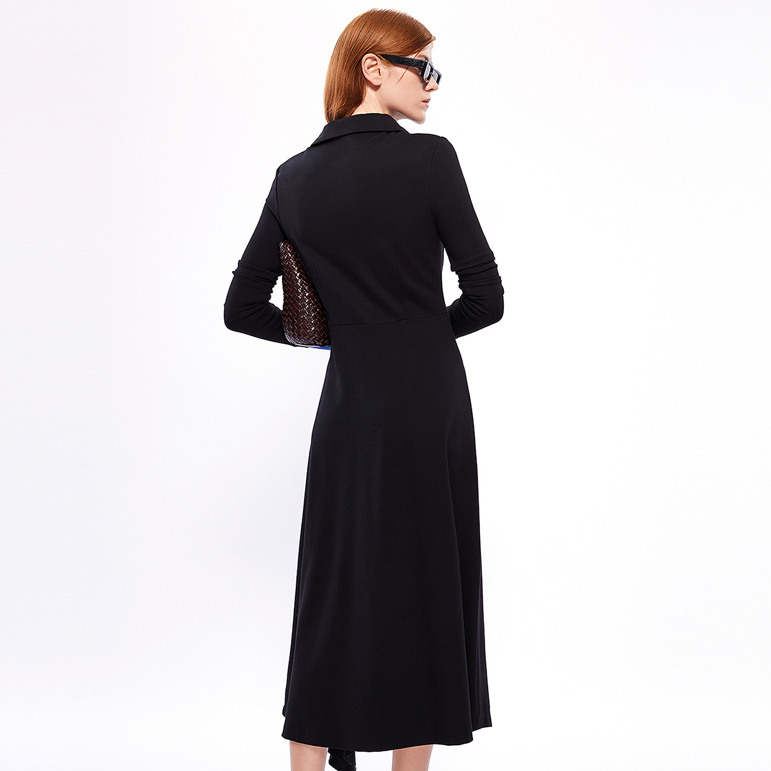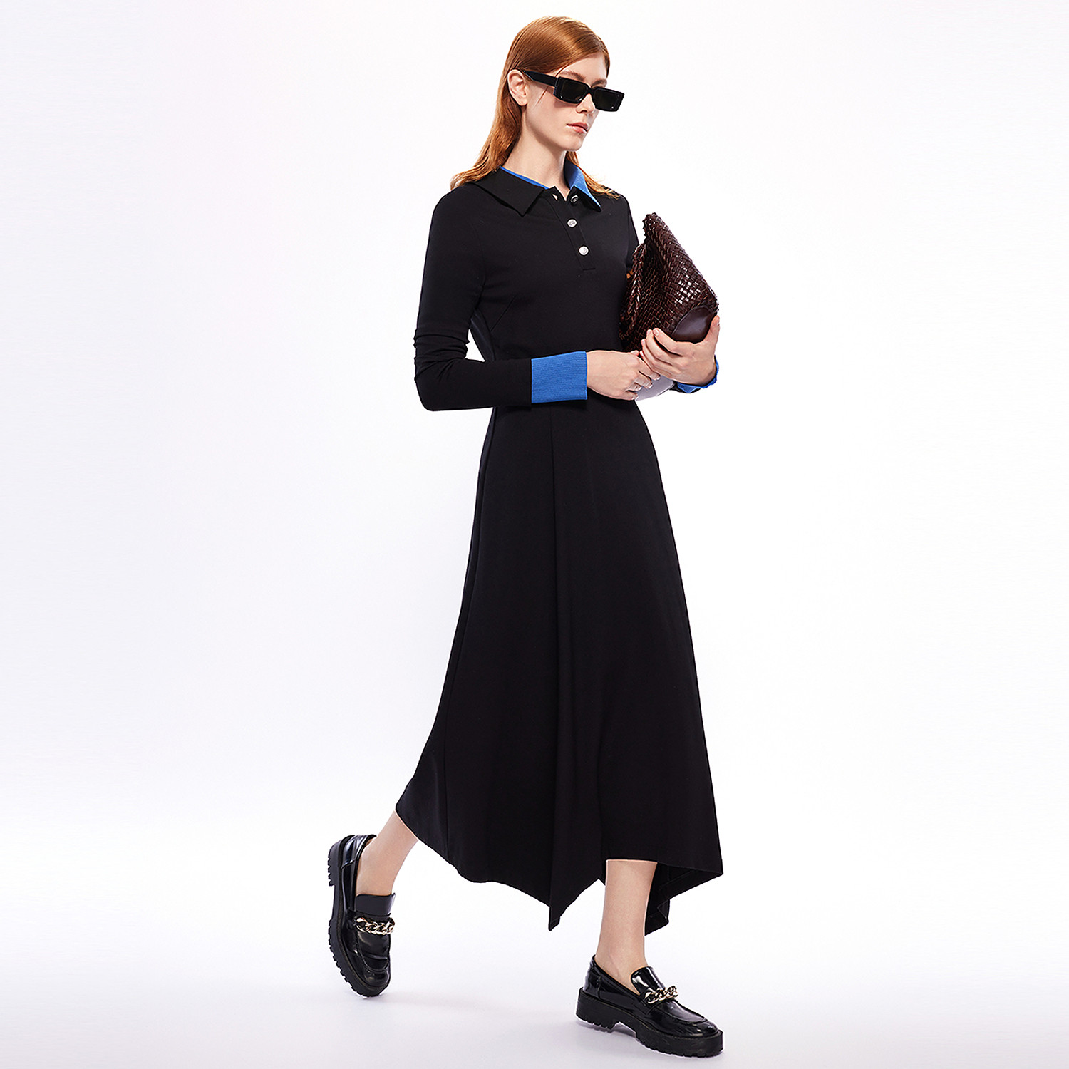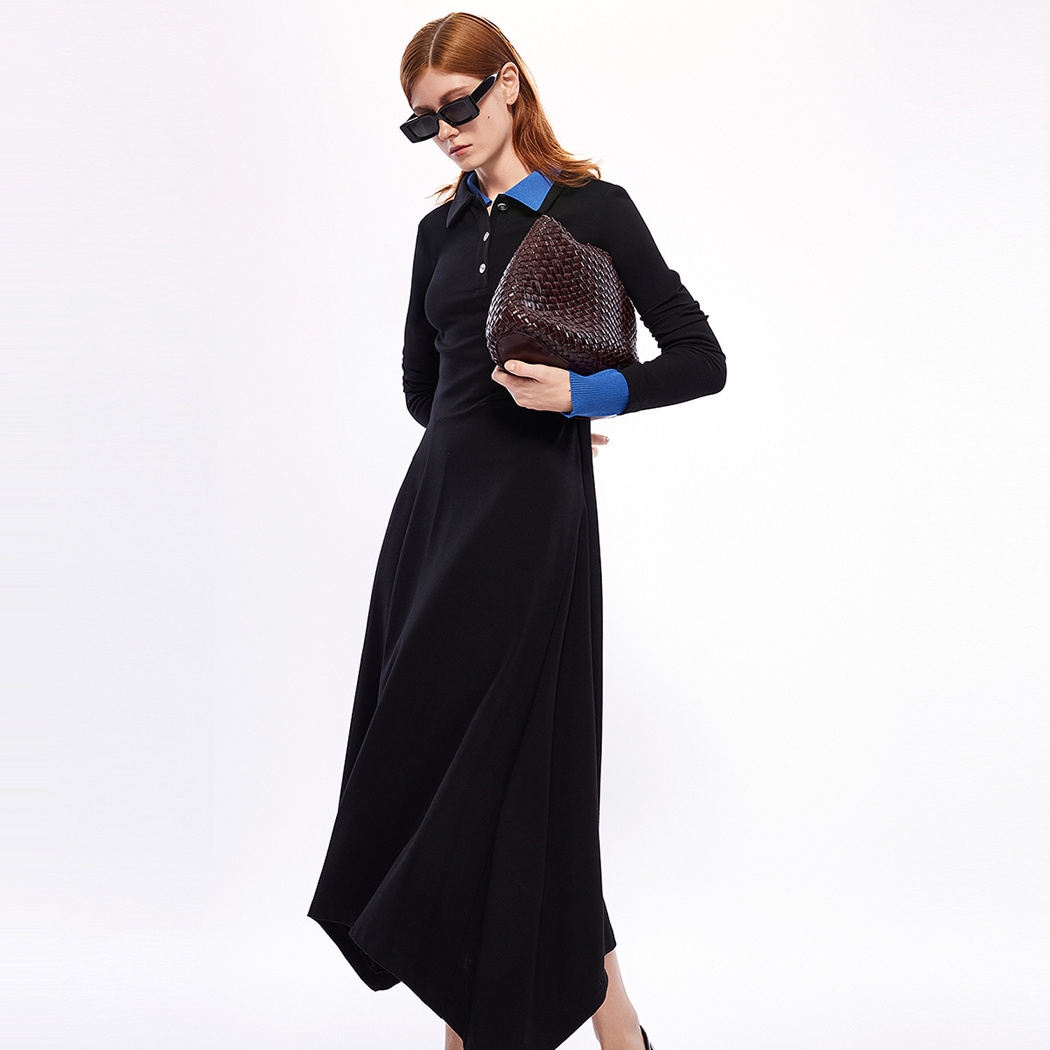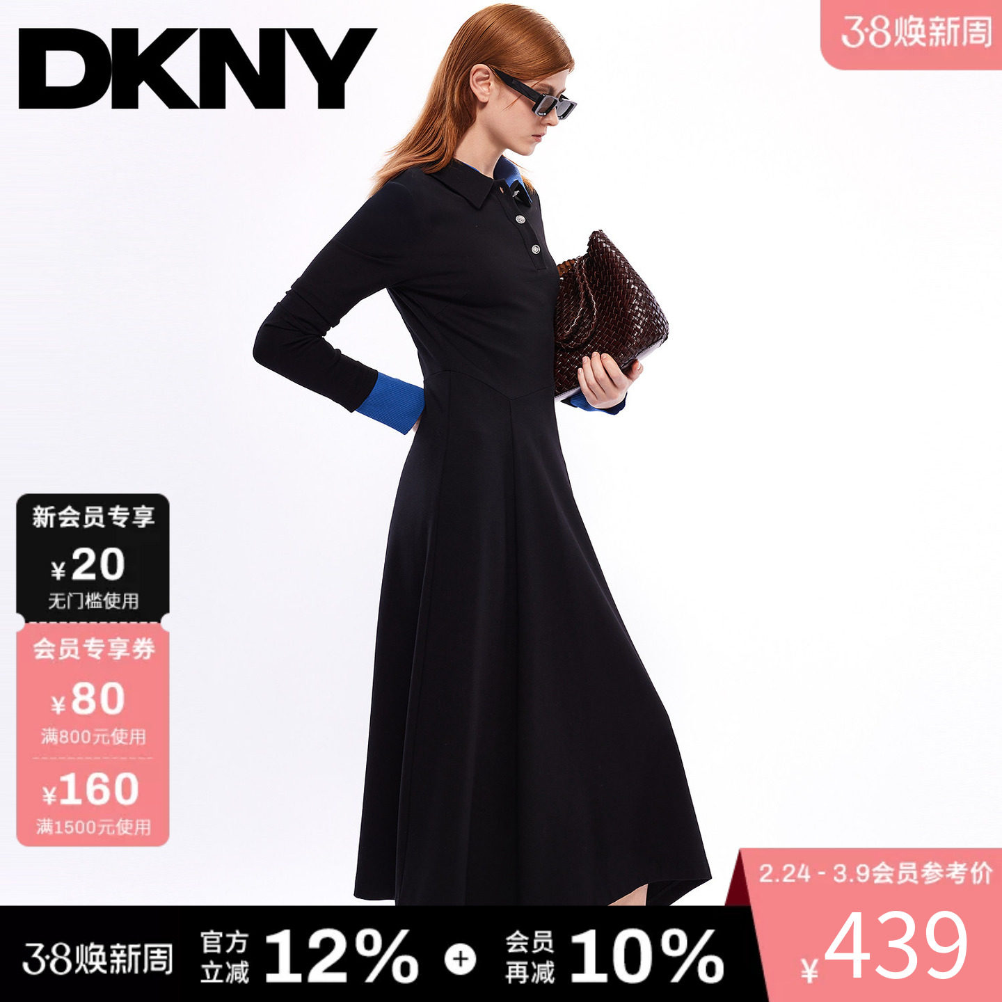 📚 DKNY唐可娜儿春季长袖针织连衣裙女弹力收腰修身不对称下摆A字裙