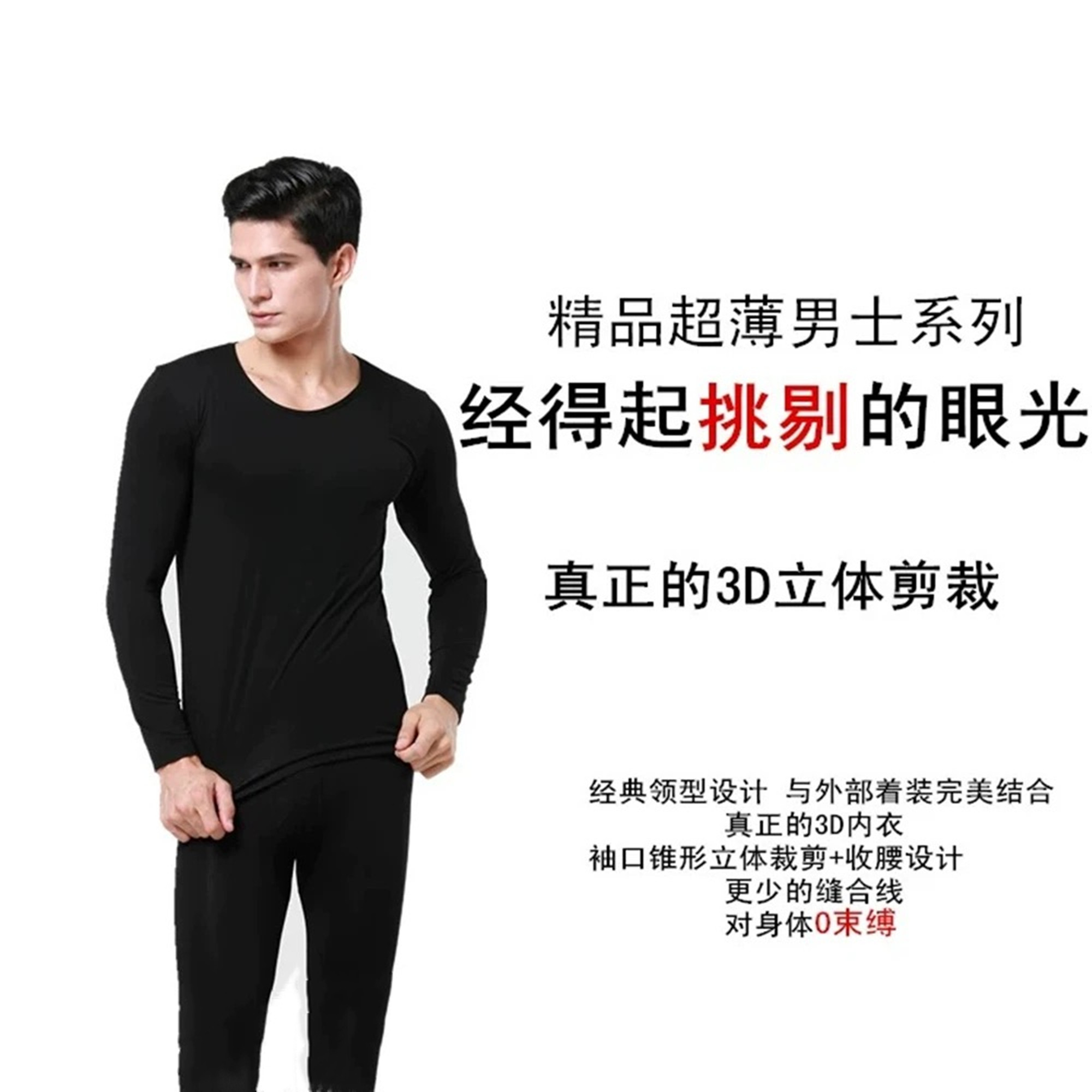 📚 格凯服饰竹纤维莫代尔男士打底内衣套装圆领贴身超薄紧身秋衣秋裤