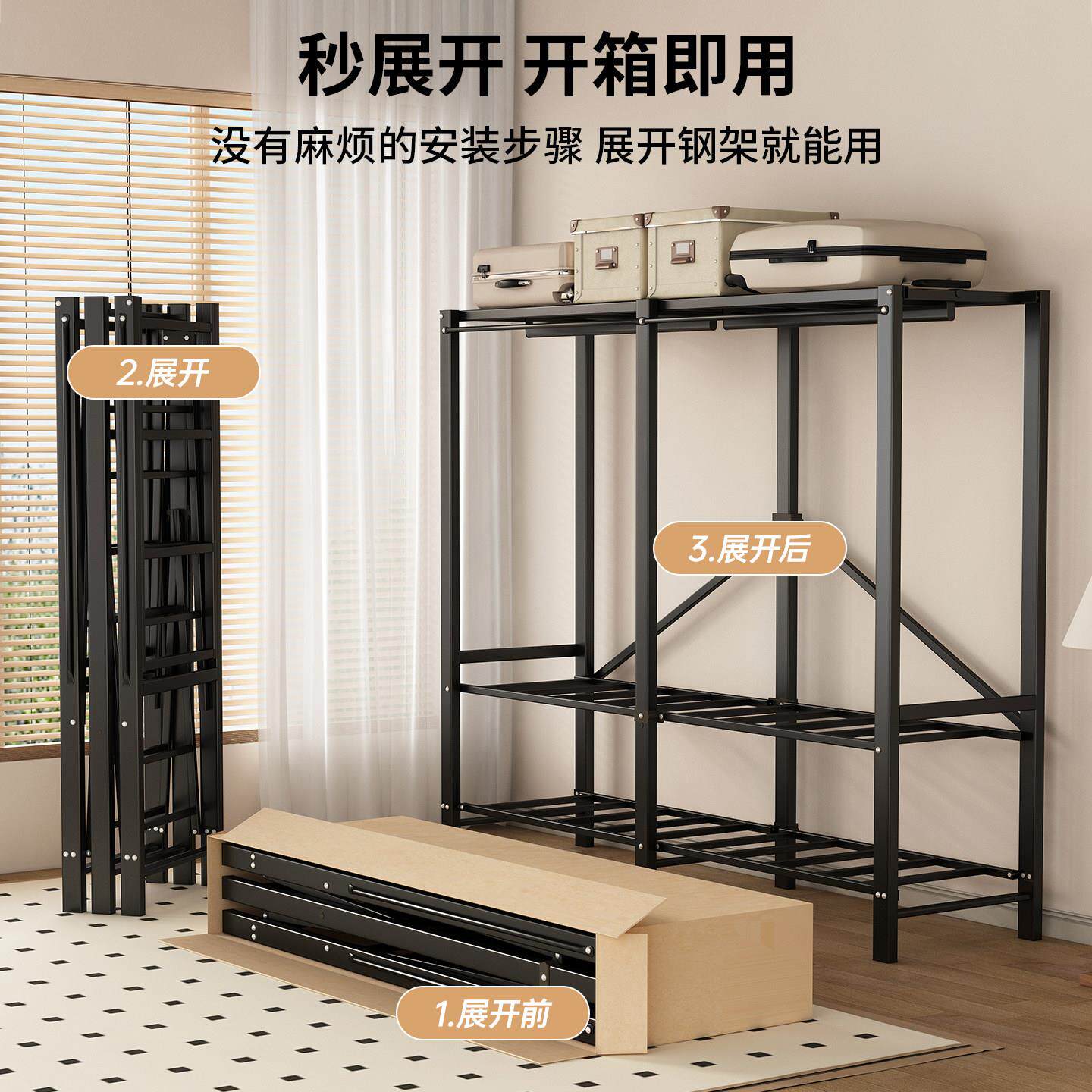 📚 免安装简易衣柜家用卧室出租房折叠布衣柜2025新款金属全框架衣橱