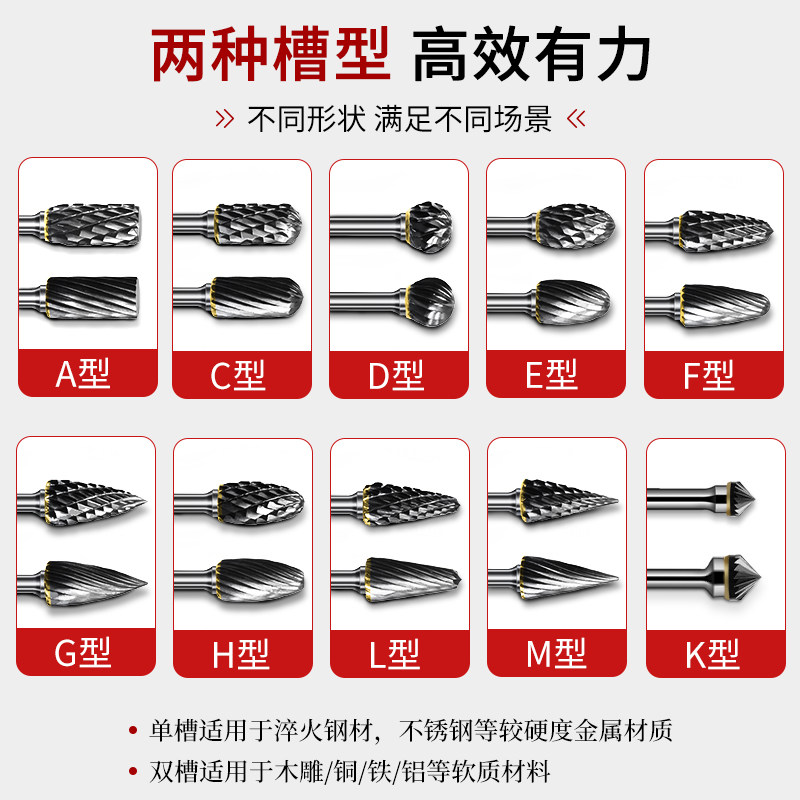 📚 硬质合金旋转锉金属磨头圆锥形钨钢磨头椭圆铣刀锥形铰刀6mm柄