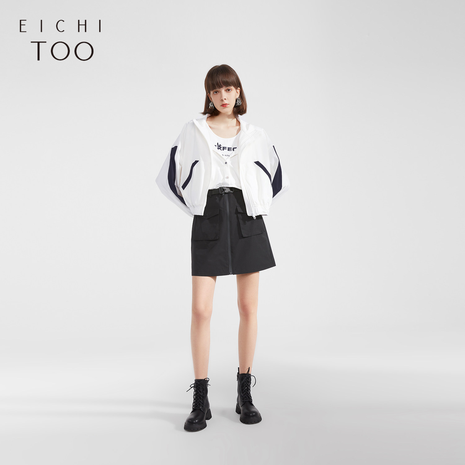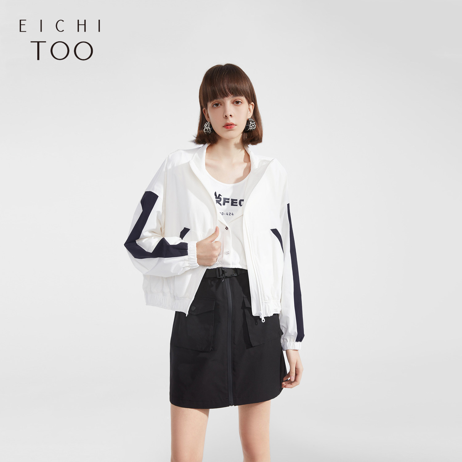 📚 爱居兔春街头时尚拉链可立领宽松夹克女外套