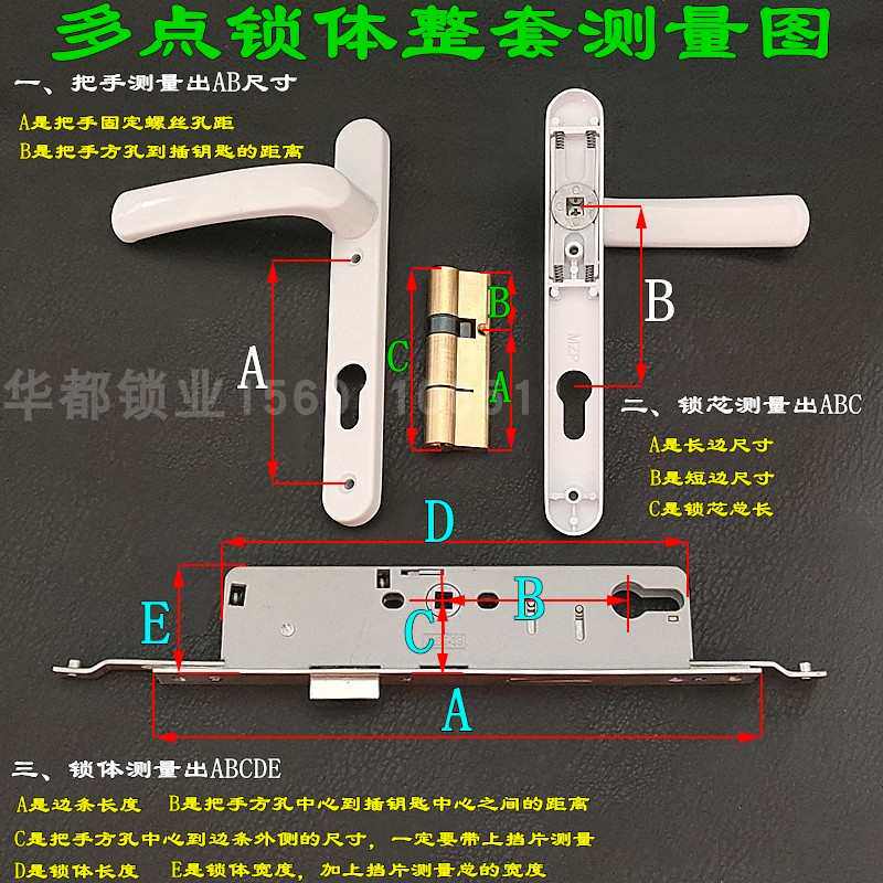 📚 整套防盗门锁执手 8535铝合金门锁把手 85/92多点锁体 单双开锁芯