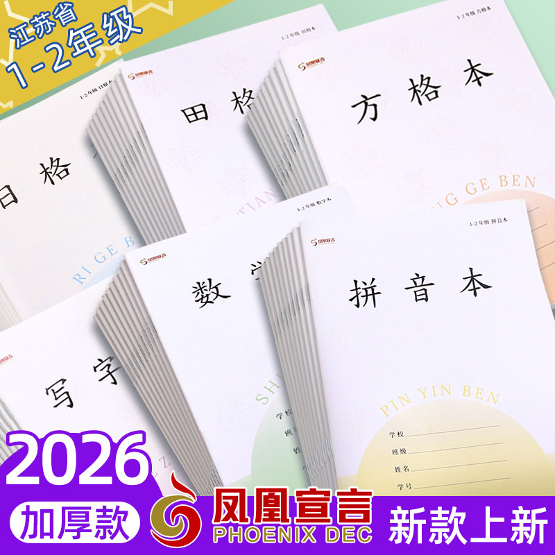 📚 凤凰2026田格本小学生作业本子统一二年级拼音本标准日方格本加厚田字格练习写字本江苏一年级幼儿园数学传媒