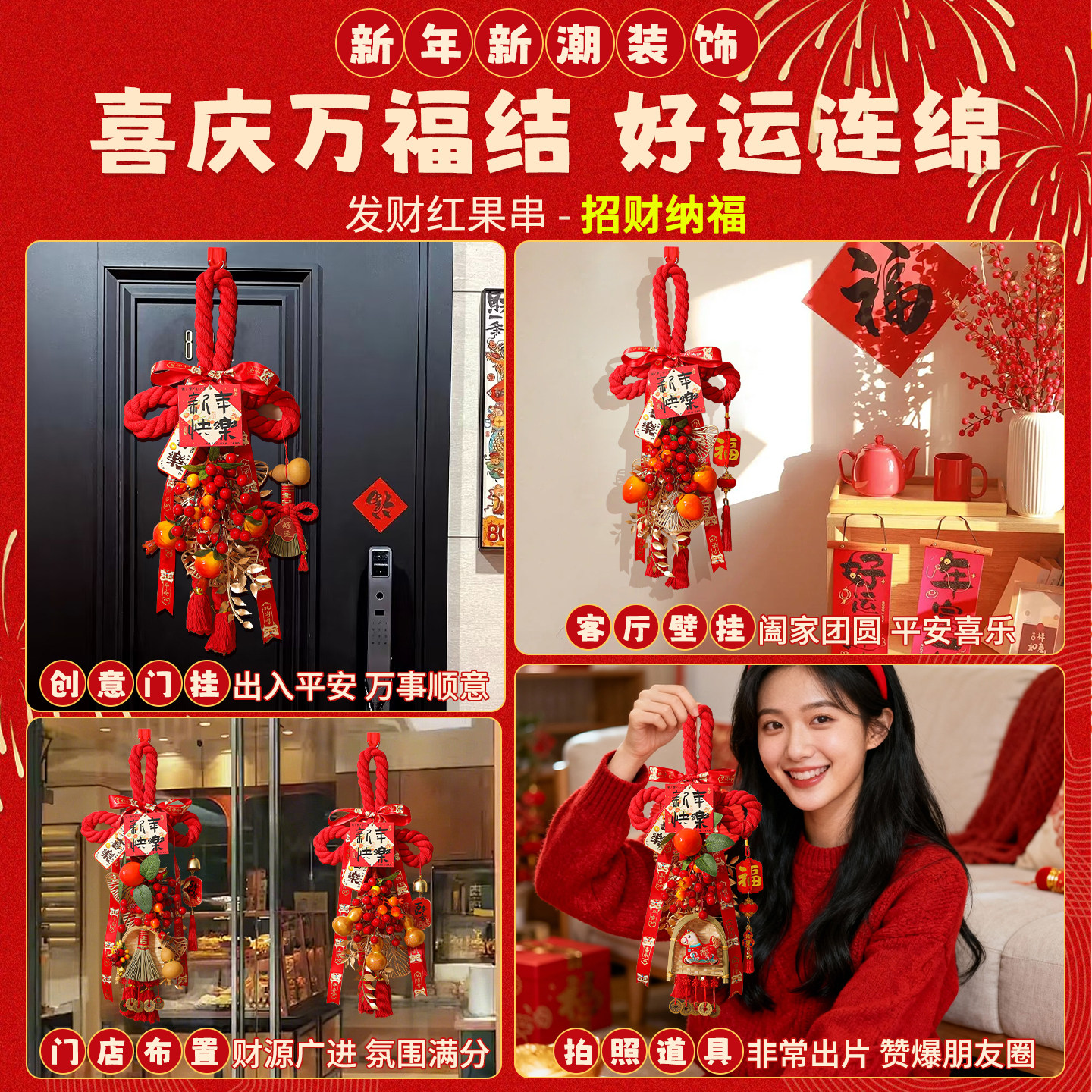 📚 新年中国结福字入户门上挂件成品2026新款装饰客厅高档万字结门挂