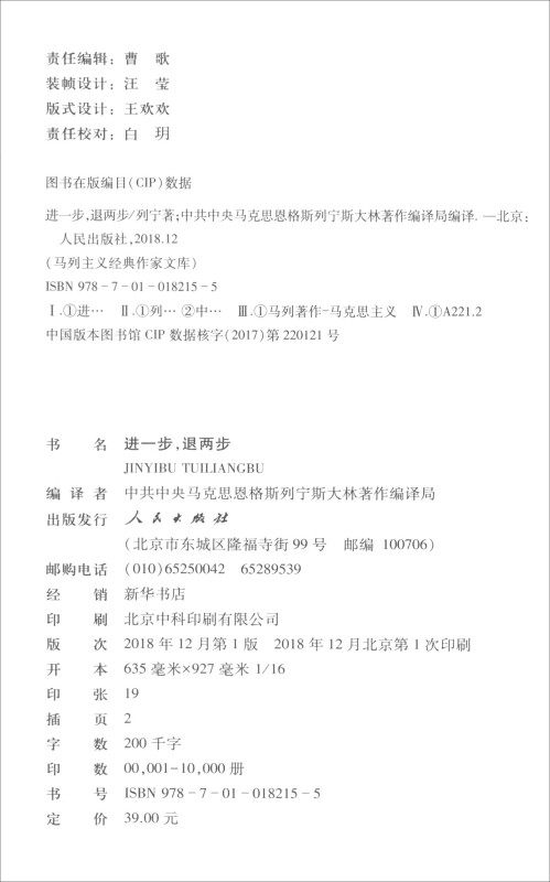 📚 正版包邮 列宁 进一步,退两步 人民出版社 (文库本)(马列主义经典作家文库著作单行本)9787010182155