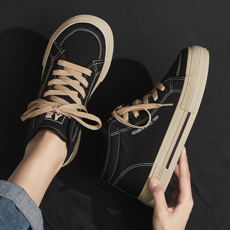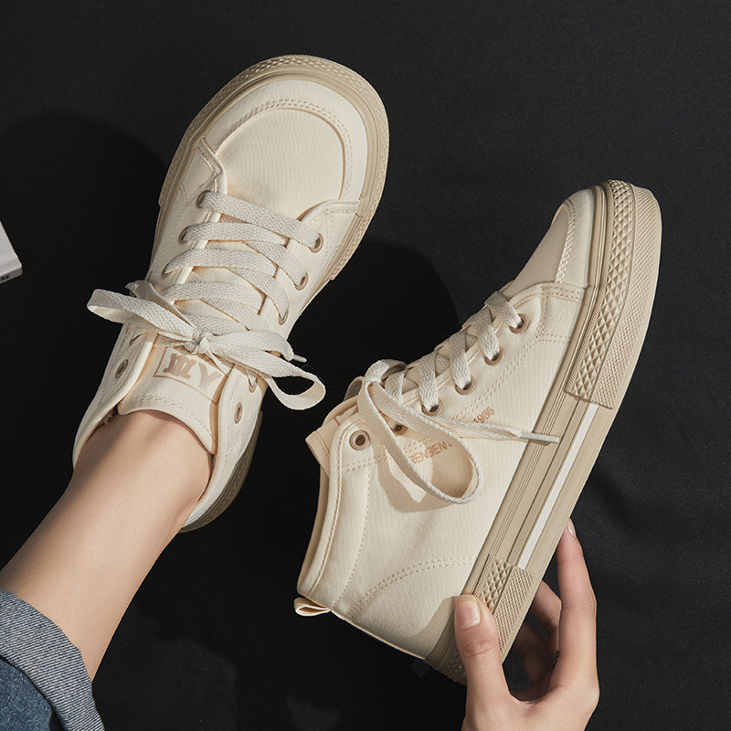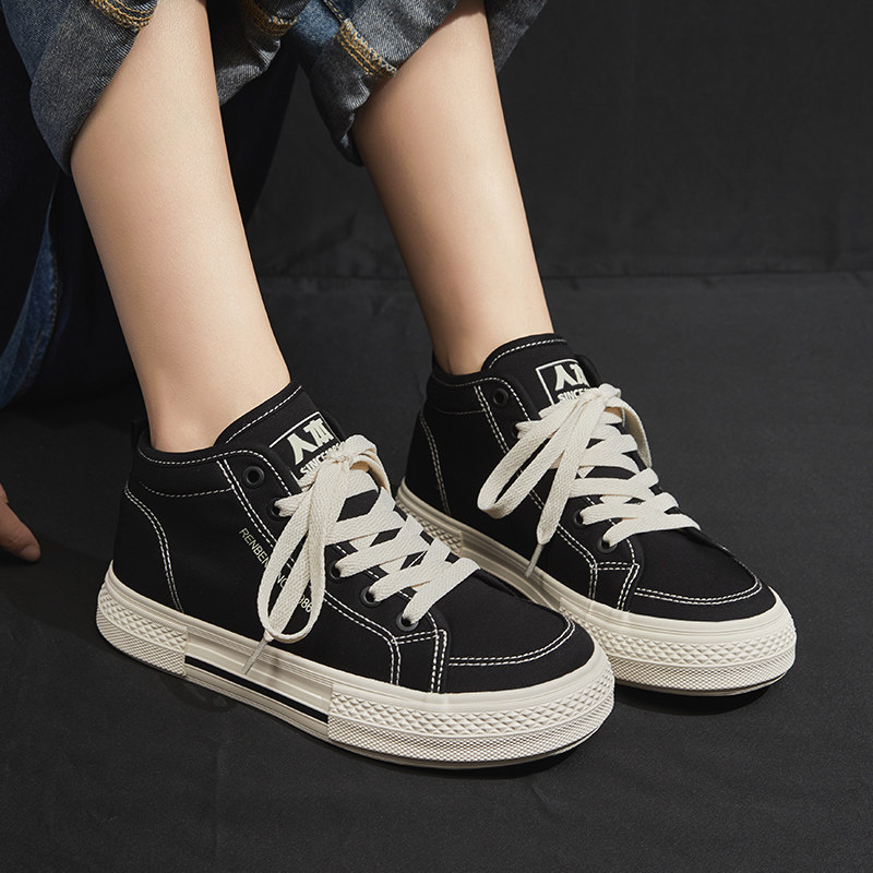 📚 人本高帮春节帆布鞋女2026新款百搭中帮板鞋厚底高邦运动休闲布鞋