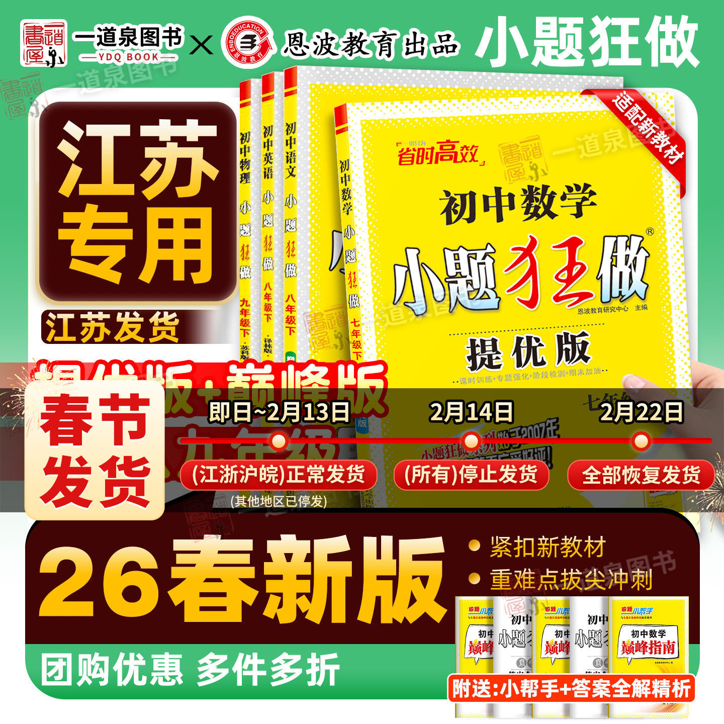 📚 2026初中小题狂做七年级八年级九年级上册下册数学苏科版人教版语文英语译林版九下化学沪教版七下提优版八下物理巅峰版同步练习册