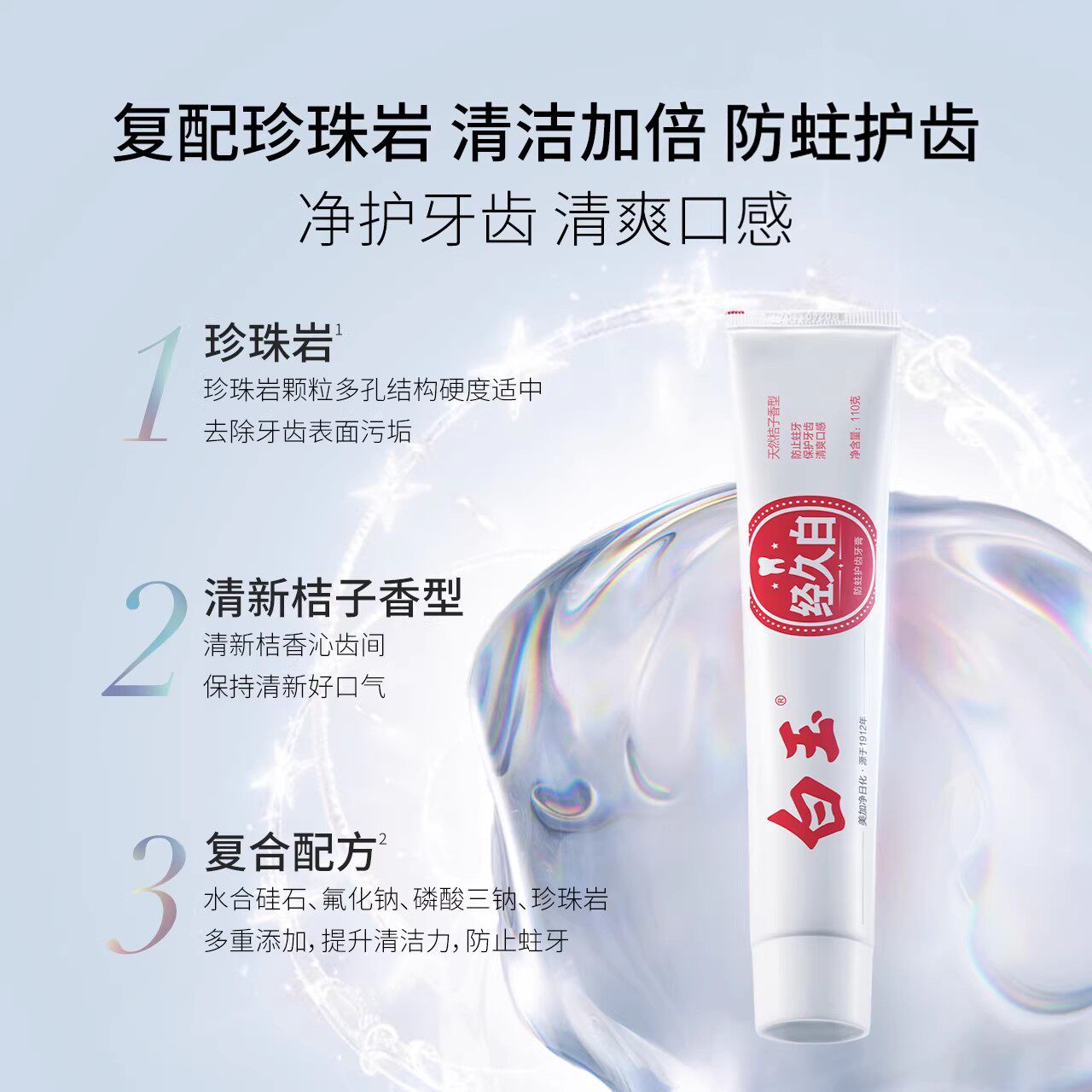 📚 上海白玉经久白牙膏防蛀牙护齿洁白牙齿清新口气正品国货天然桔子