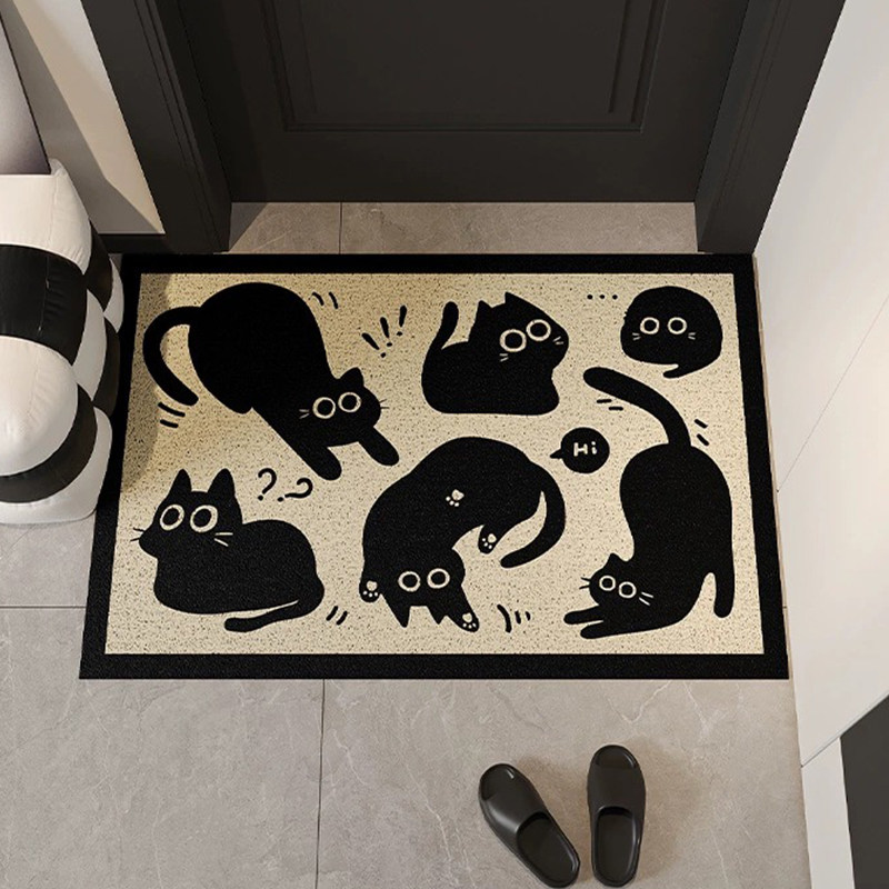 📚 黑猫入户门地垫家用玄关大门口门垫进门蹭土脚垫pvc丝圈防滑垫子