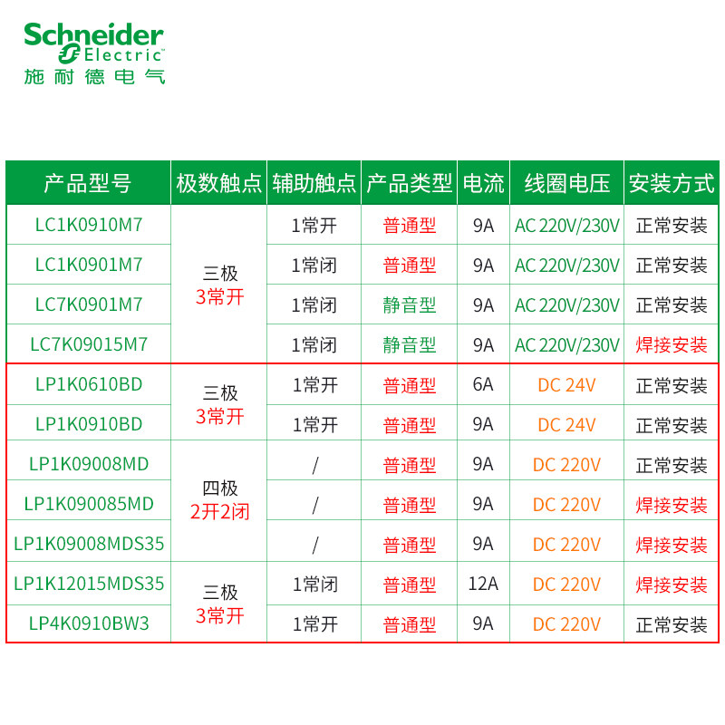 📚 施耐德K系列交直流接触器LC1K LC7K交流 LP1K LP4K直流 电梯专用