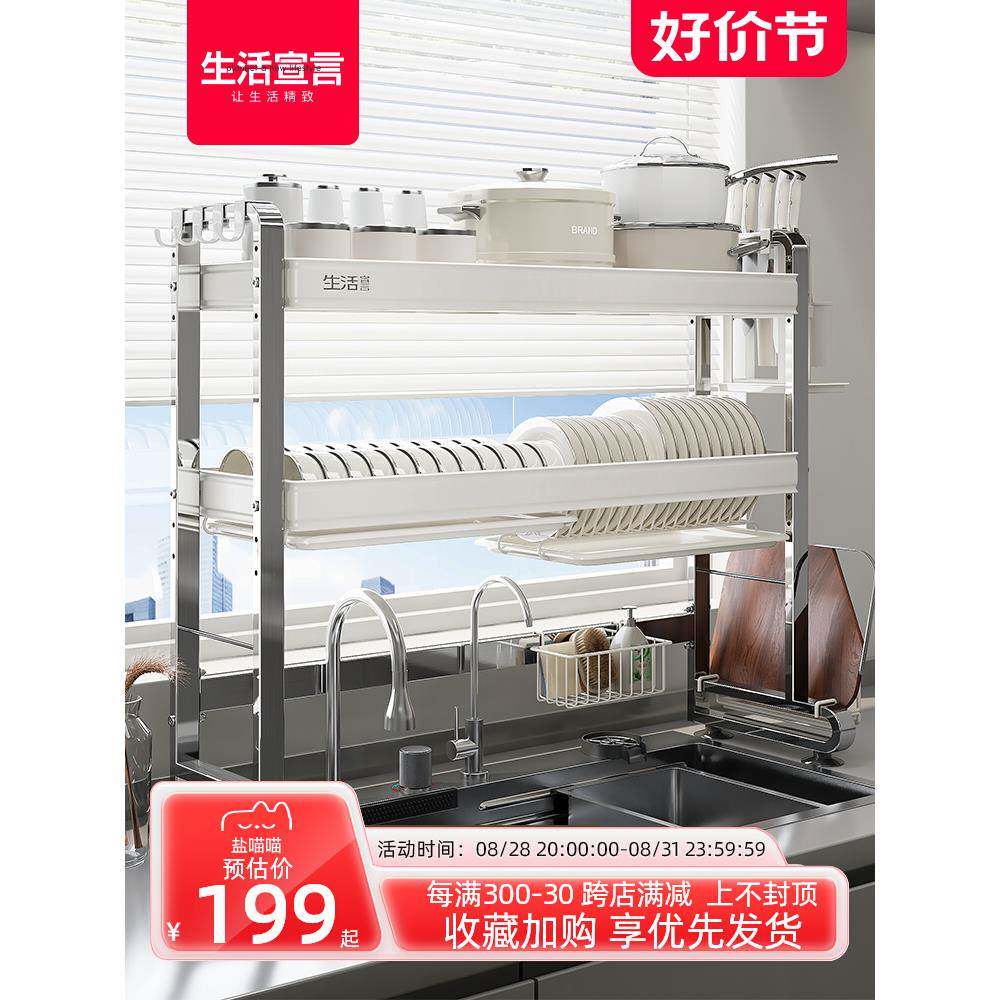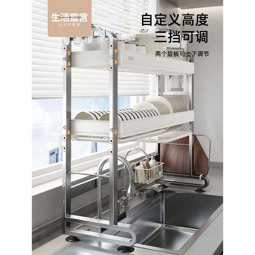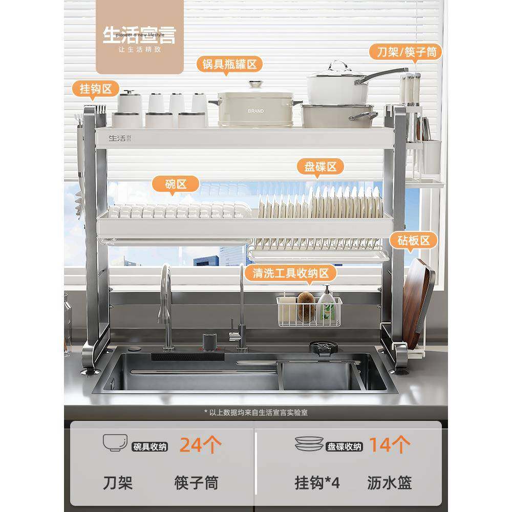 📚 cs不锈钢厨房水槽置物架水池上方放碗碟收纳碗盘筷沥水架子