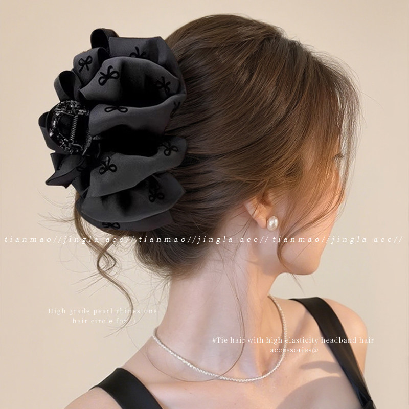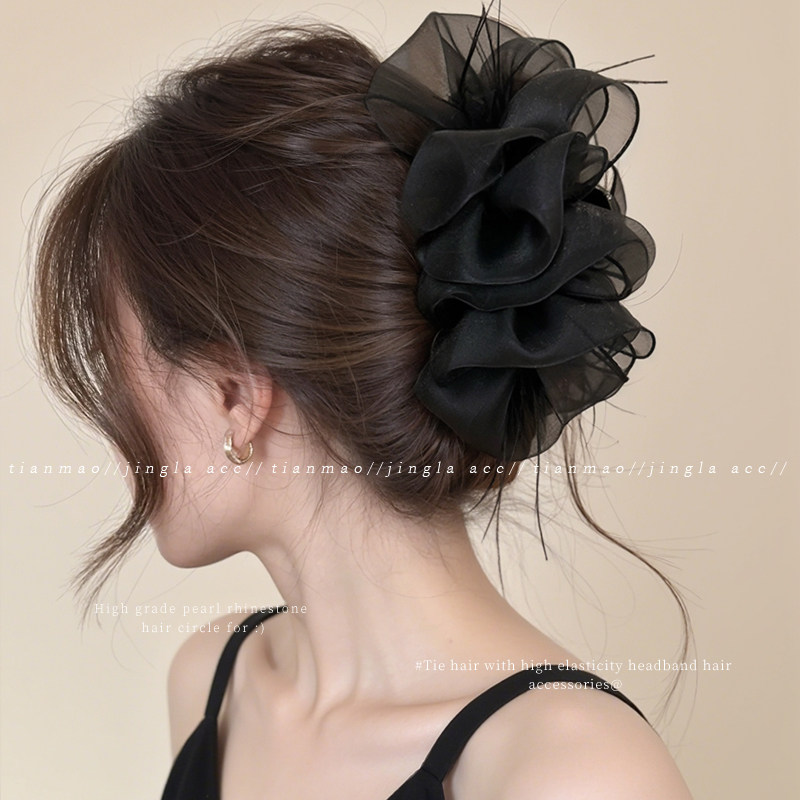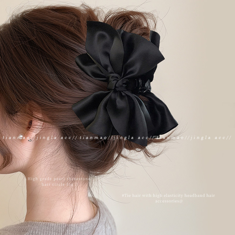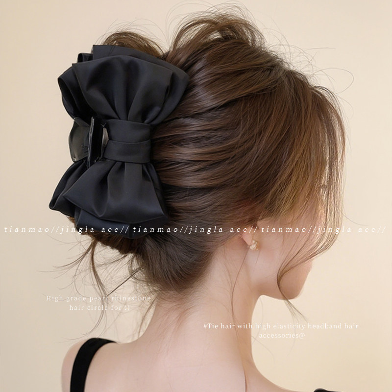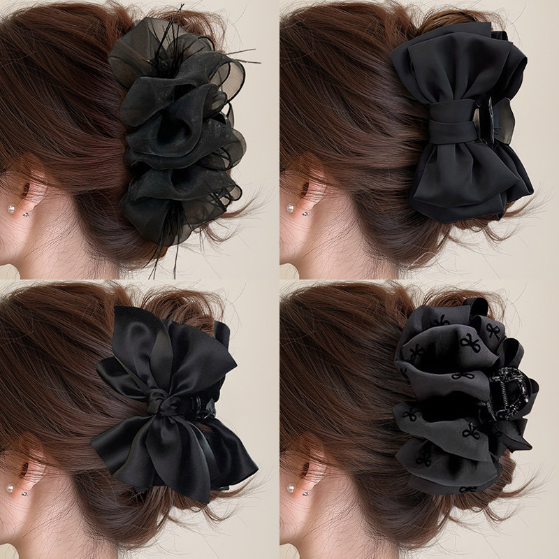 📚 高级感黑色缎面大号抓夹发量多发夹饱满后脑勺盘发鲨鱼夹发卡头饰